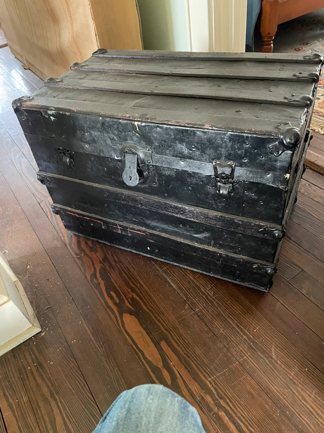 Vintage Black Steamer Trunk
