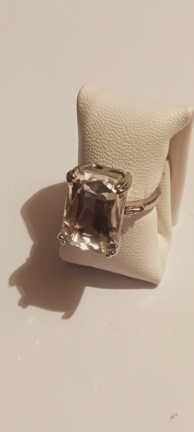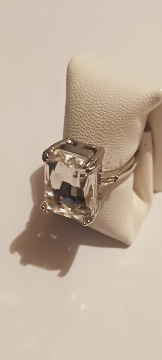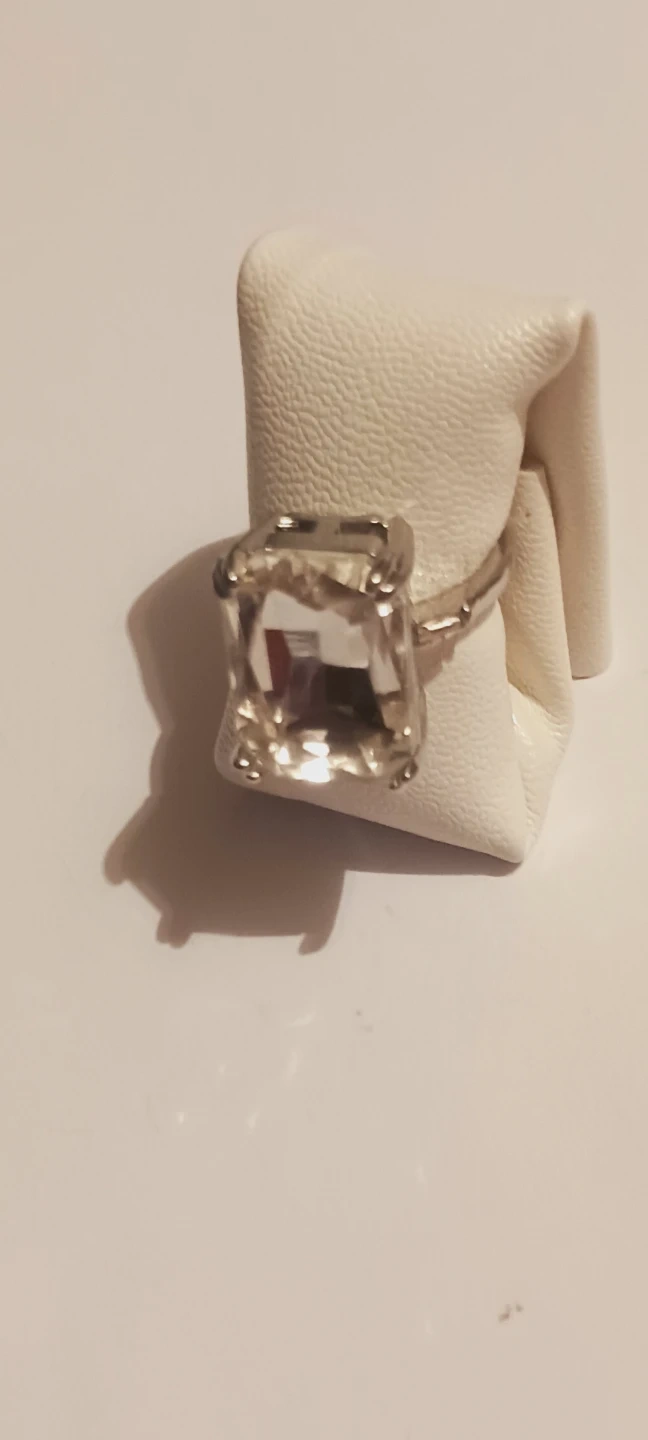 New !! This ring features a large square cut stone. The setting is silver-toned metal. It's a statement piece for any occasion!! Size 8mb