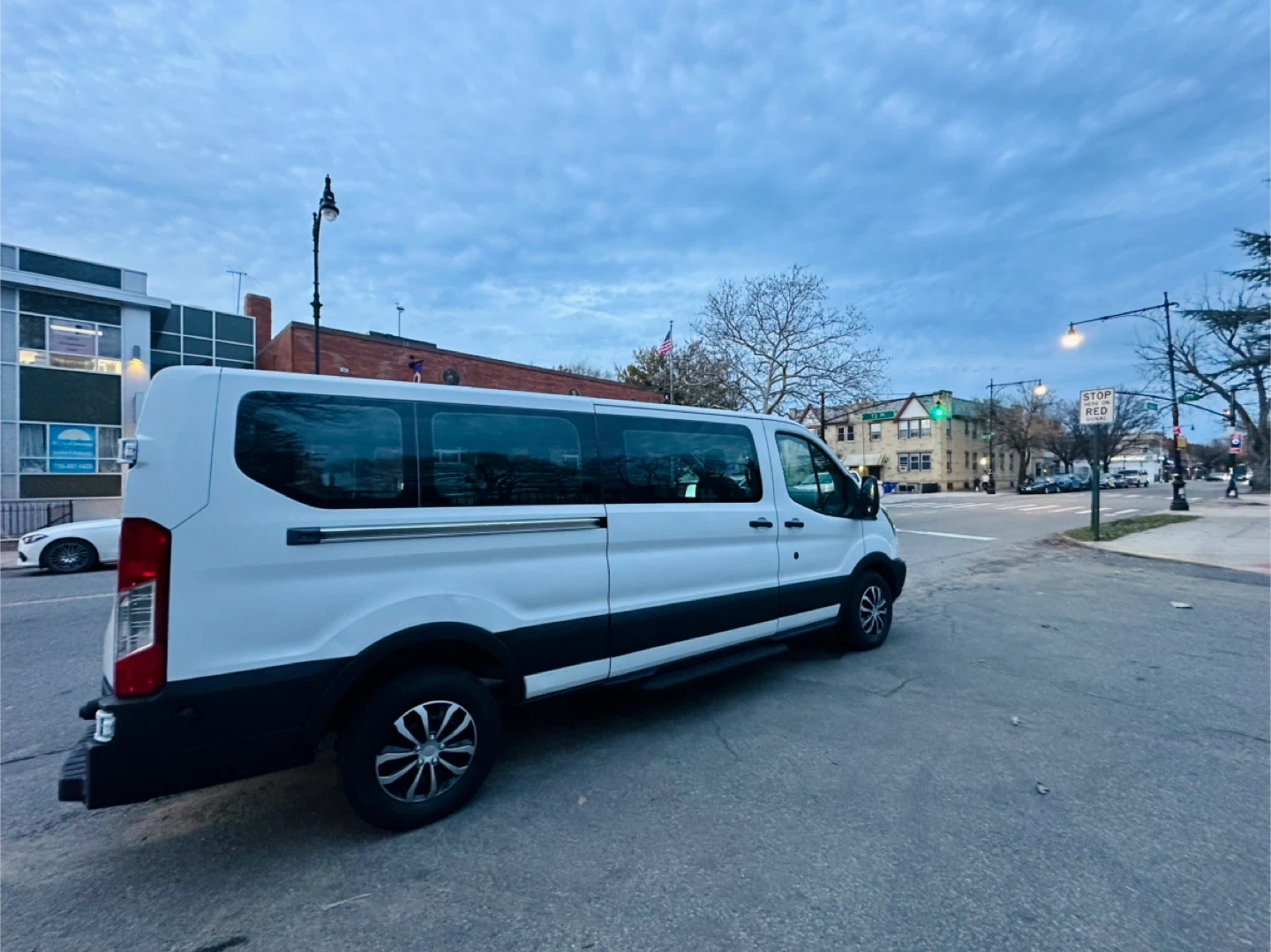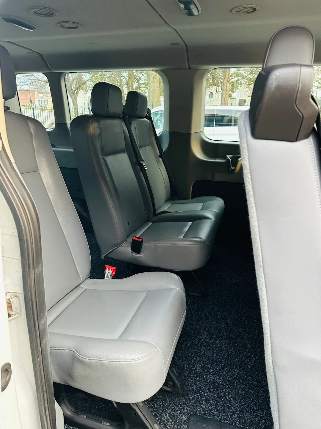 This is a white Ford Transit 350 passenger van. It features comfortable seating for multiple passengers. This vehicle is well-suited for group transportation needs. 93000 miles Clean title Price negotiable