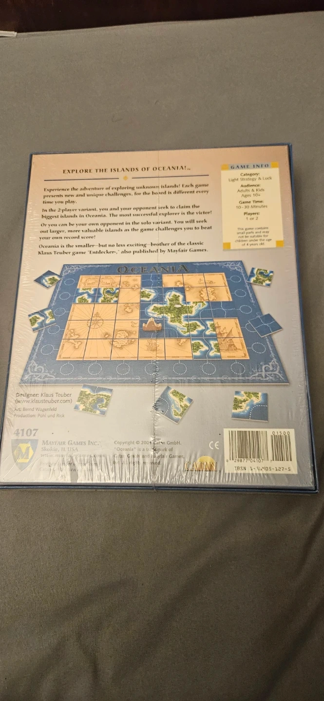 Explore the islands of Oceania in this board game for 1 or 2 players. Each game presents new and unique challenges for the board. It's a light strategy and luck game.