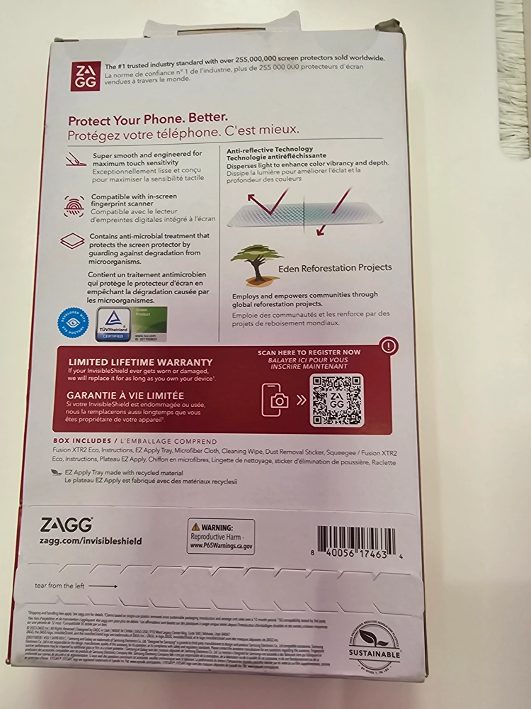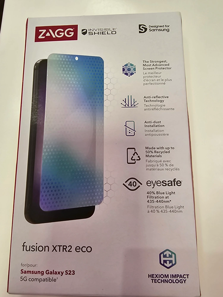 Screen protector, unopened. Designed for Samsung. Comes with a lifetime warranty. Putting on a screen protector can give you peace of mind about your phone's safety.