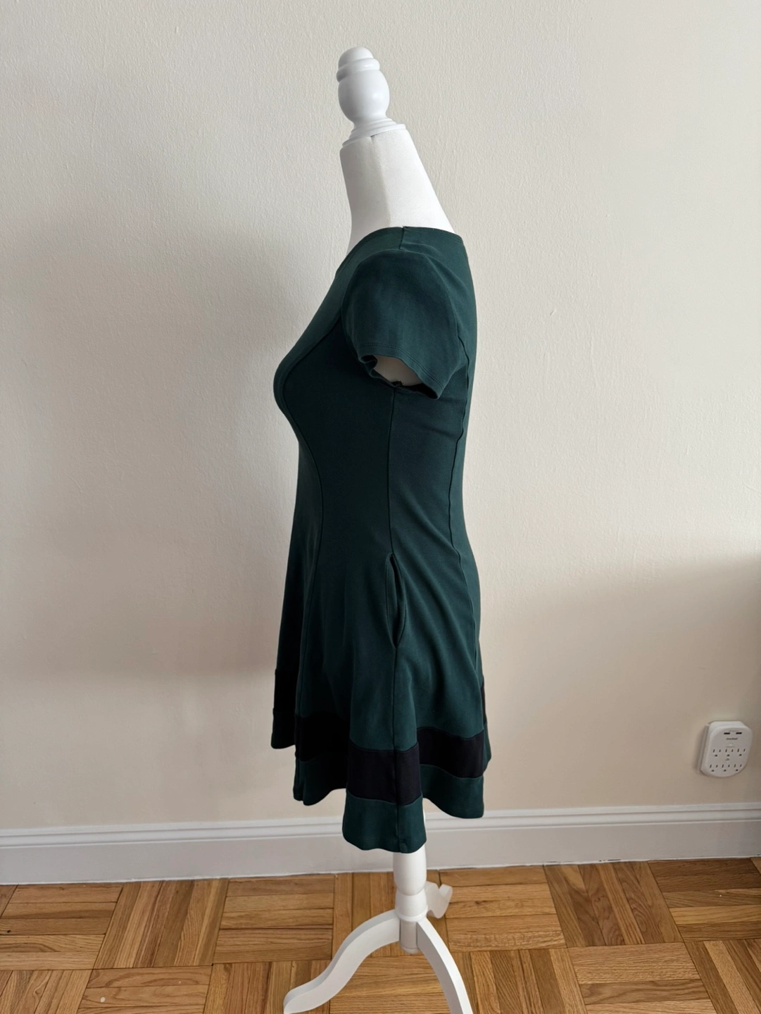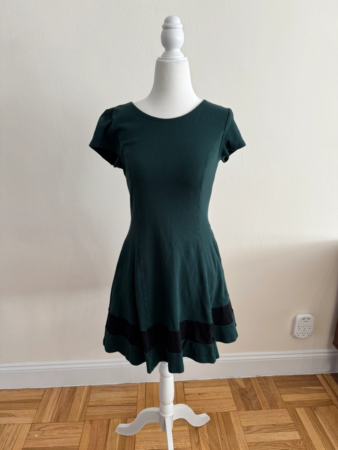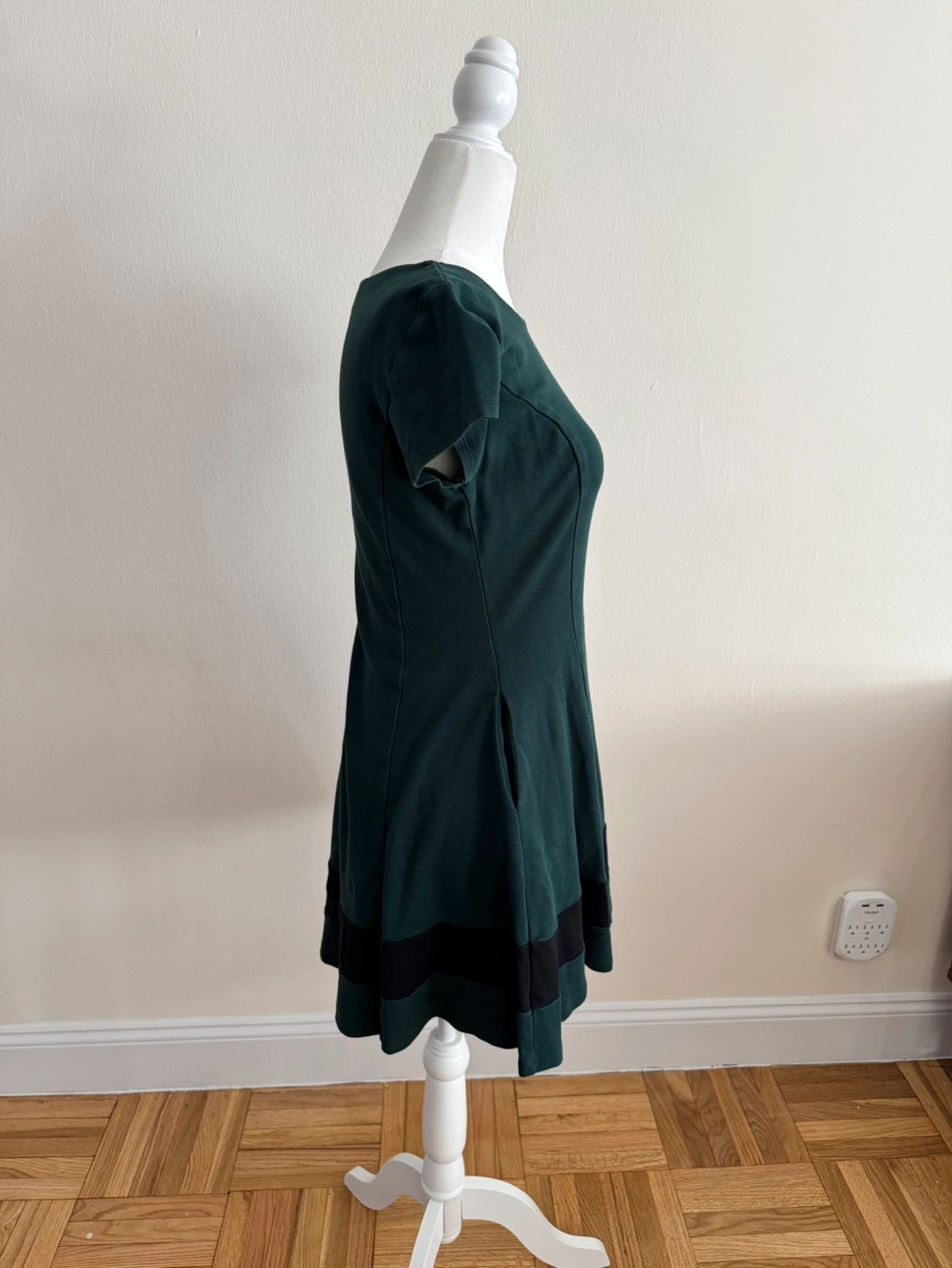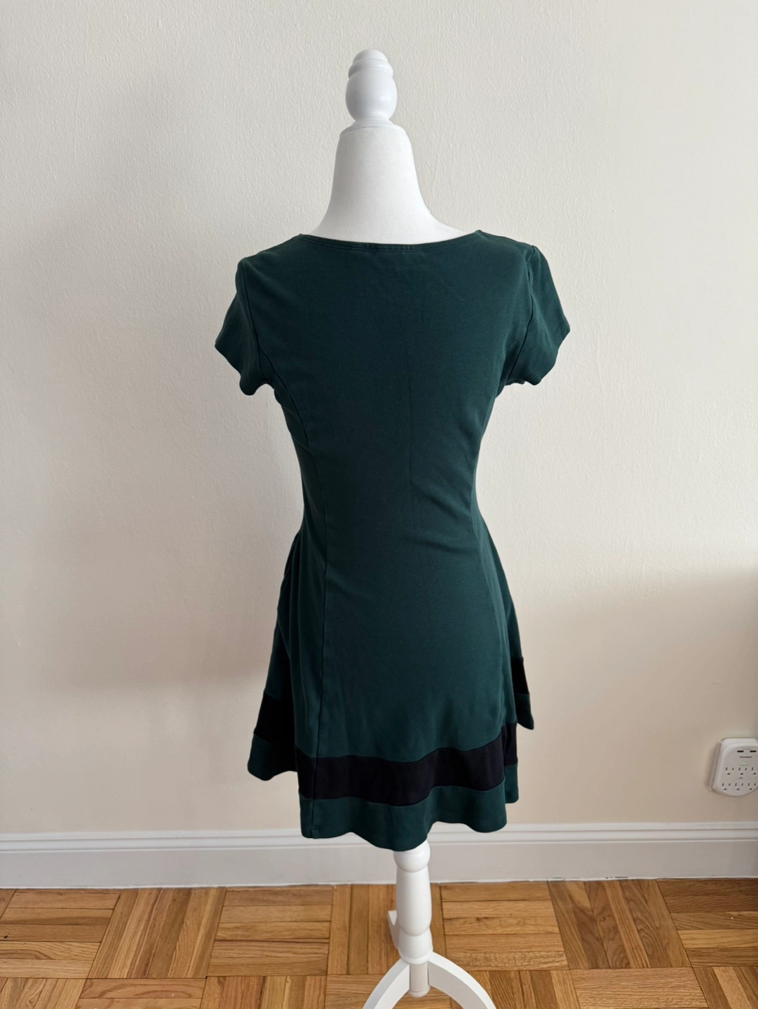 Dark green fit and flare colorblock dress. Short sleeves. 100% Cotton.