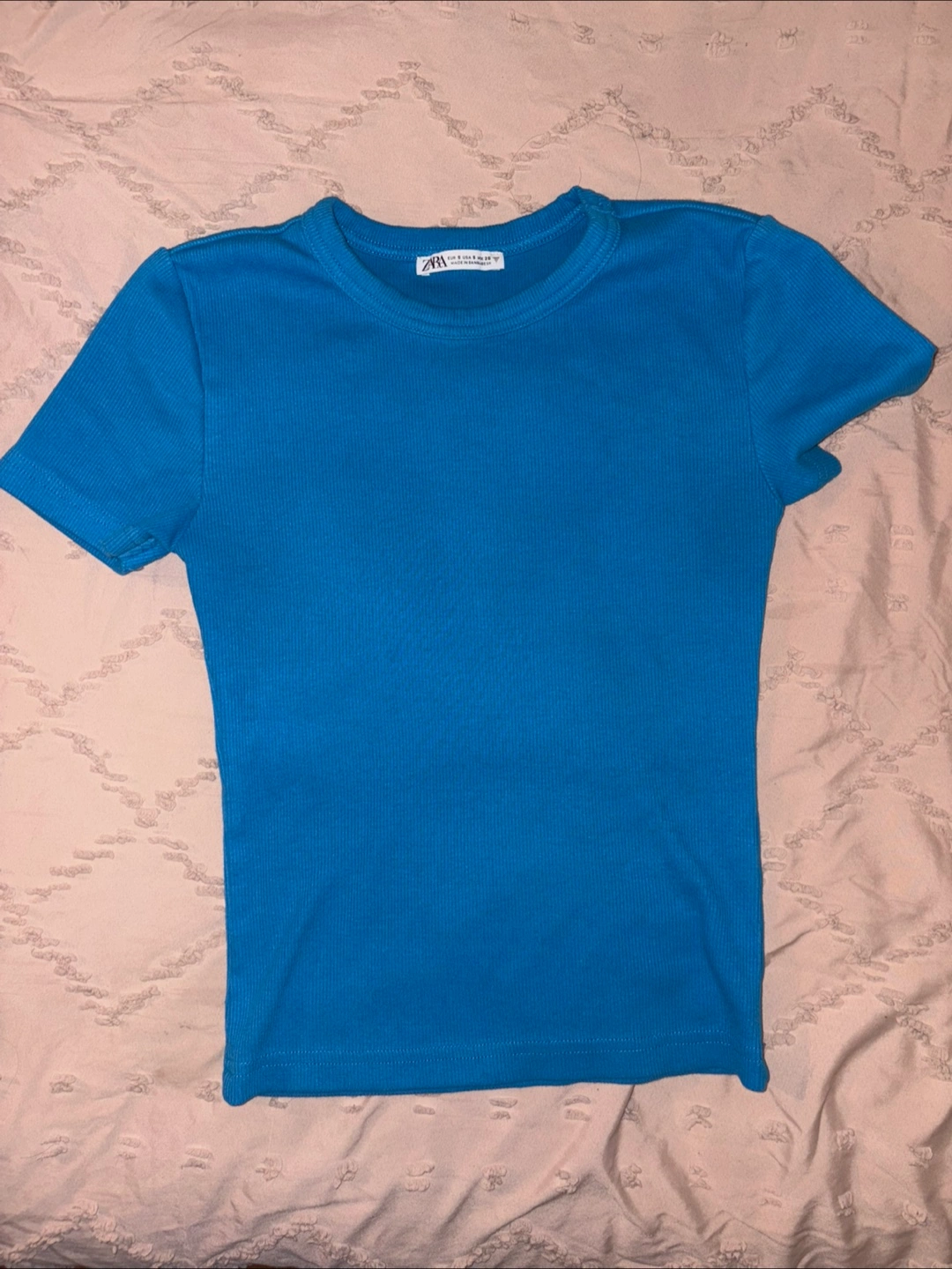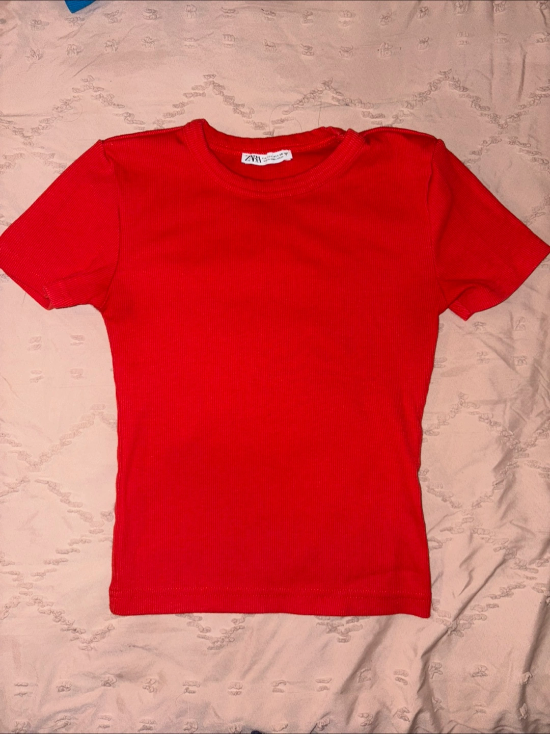 Selling two Zara Basic rib t-shirts! One is a vibrant blue and the other is a bright red. Both are in great condition and ready for a new home. Perfect for everyday wear!