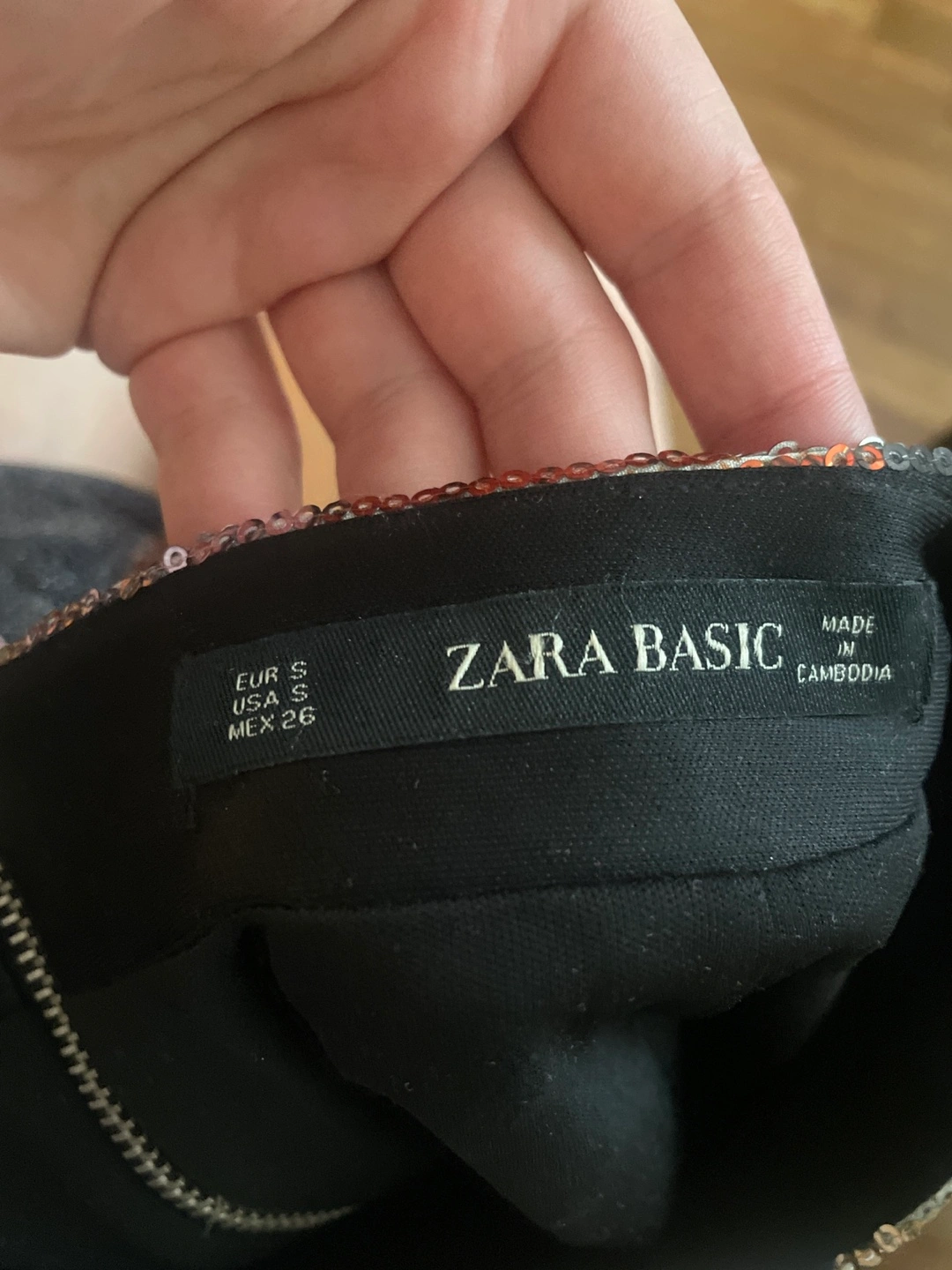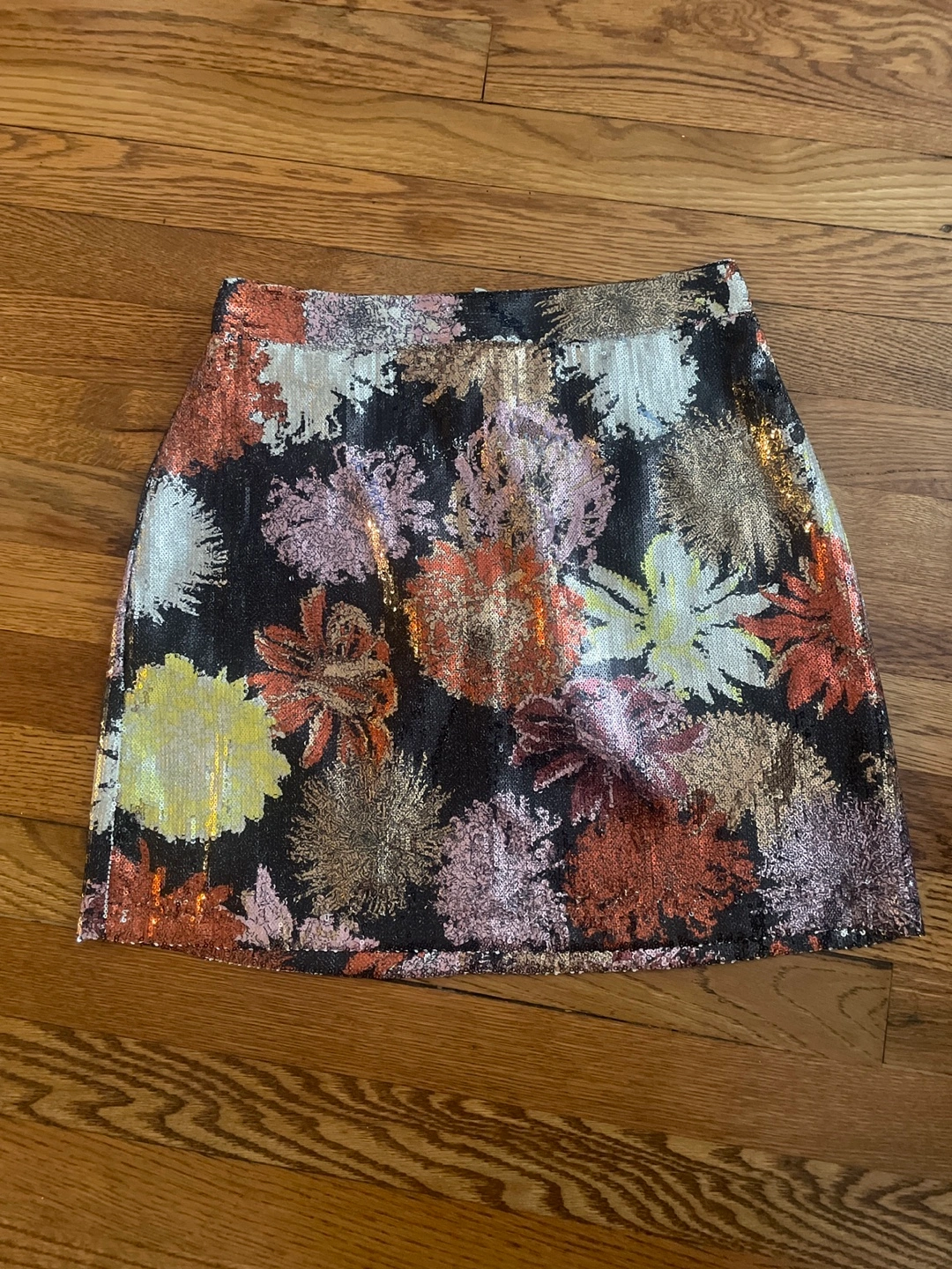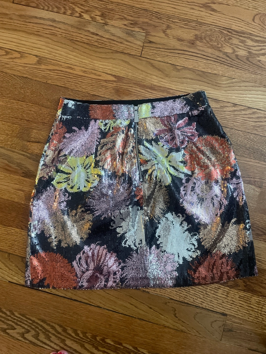 Selling a Zara Basic mini skirt with a fun floral sequin design! It's a size small and in great condition. Perfect for adding a bit of sparkle to your wardrobe!
