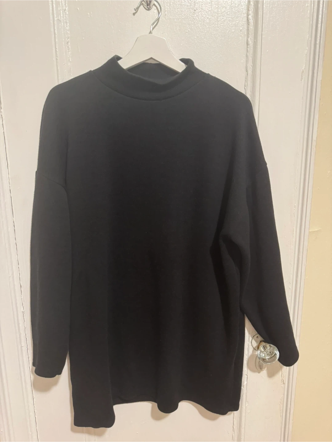 Here's a comfy black long-sleeve dress! It's perfect for layering or wearing on its own. It's in great condition and ready for a new home