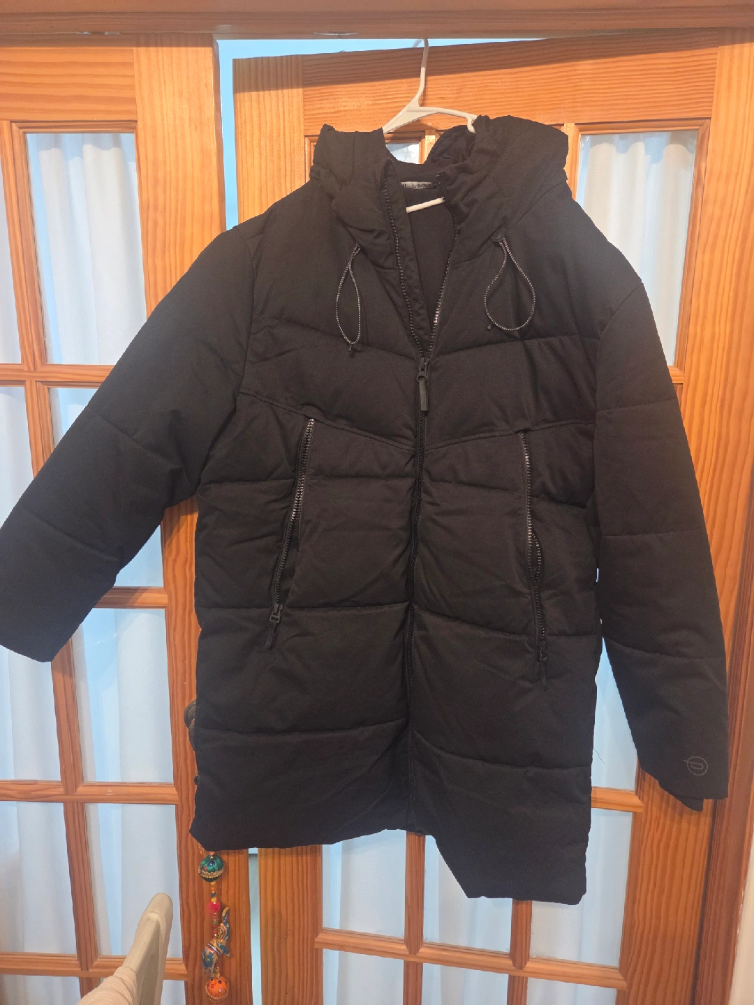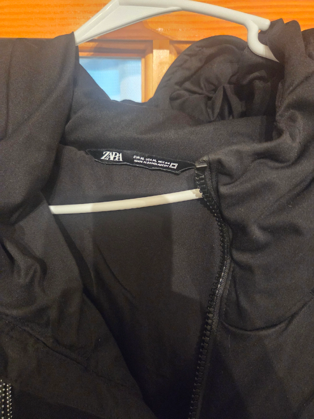 60Selling a Zara black puffer jacket in excellent condition! It's a size XL and perfect for staying warm and stylish. The jacket features a zipper closure and a hooded design. It's made of a comfortable material, great for everyday wear