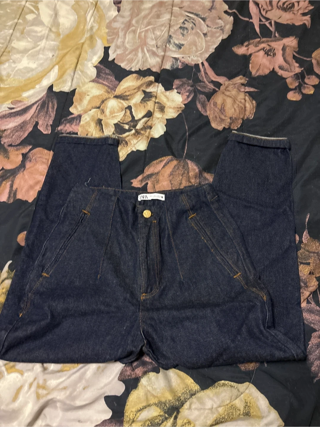 Selling a pair of Zara jeans in dark blue. They are a size M and in great condition!