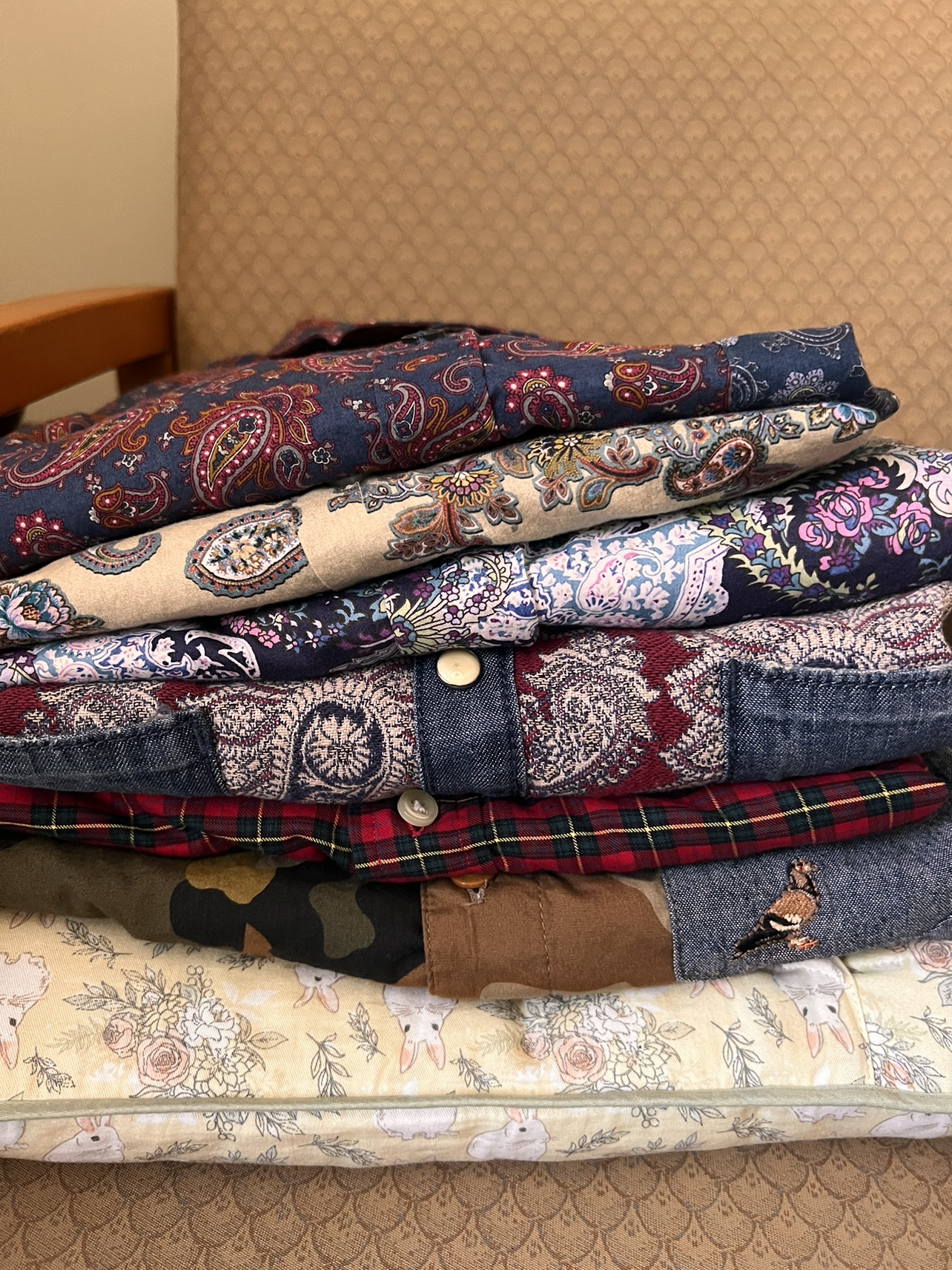 (42)ZARA Red Paisley/Denim $30 (42)ZARA Beige Paisley $15 (42)Zara Blue/Red Paisley $15 (42) Denim Flower Purple Paisley $10 L Vintage Staple Pigeon Camo/Denim - $40 L Ralph Lauren - $35 No Holes or Rips, but maybe some loose threads here and there best offer lmk Could do all for $100