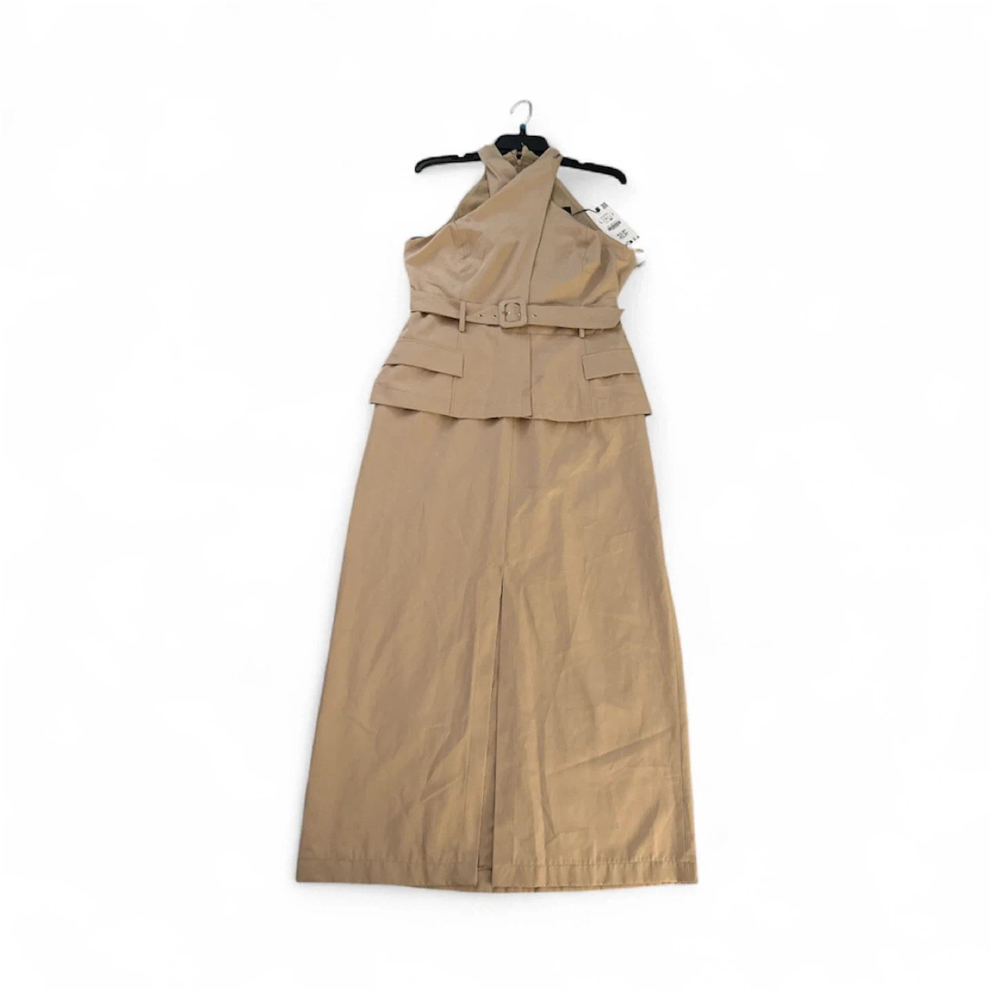 65Selling a Zara halter dress in a size medium. It's a beautiful neutral color and features a stylish belted design. Perfect for a special occasion!