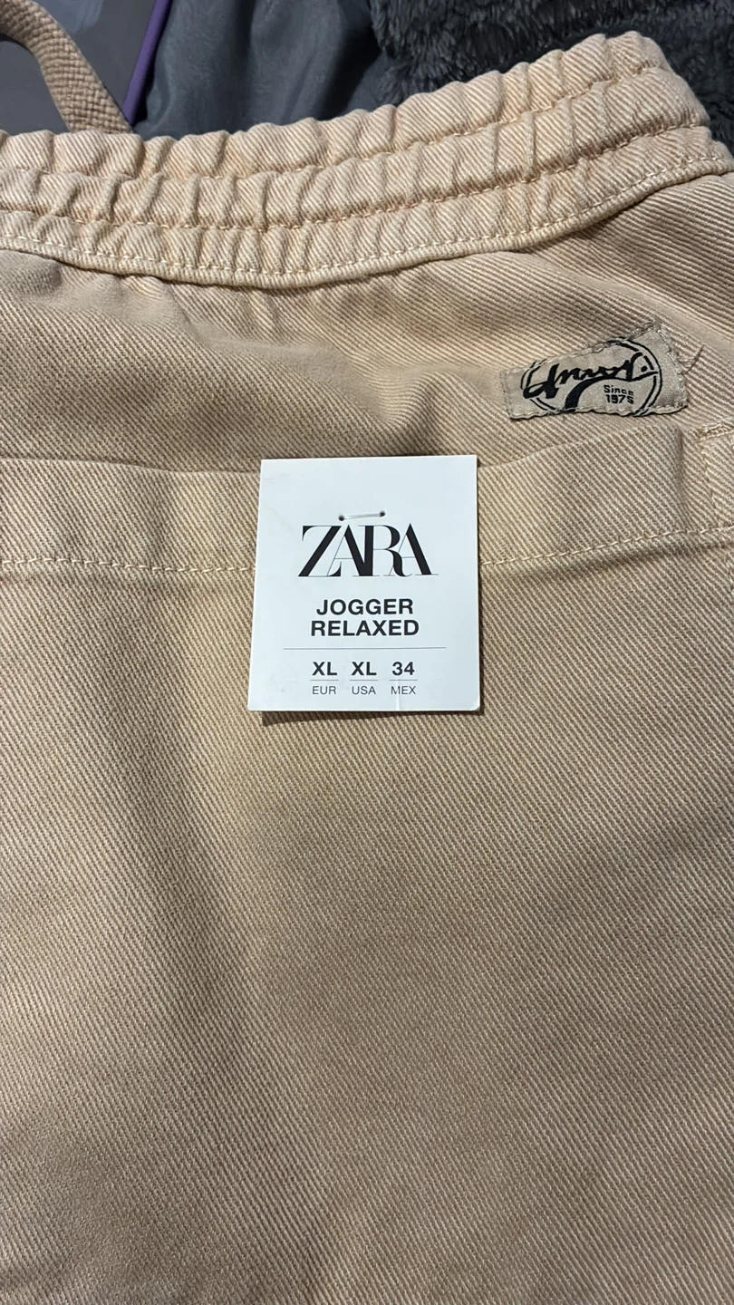 Selling a pair of Zara Jogger Relaxed pants in size XL. They are a light tan color and appear to be in good condition. Great for a casual, comfortable fit!