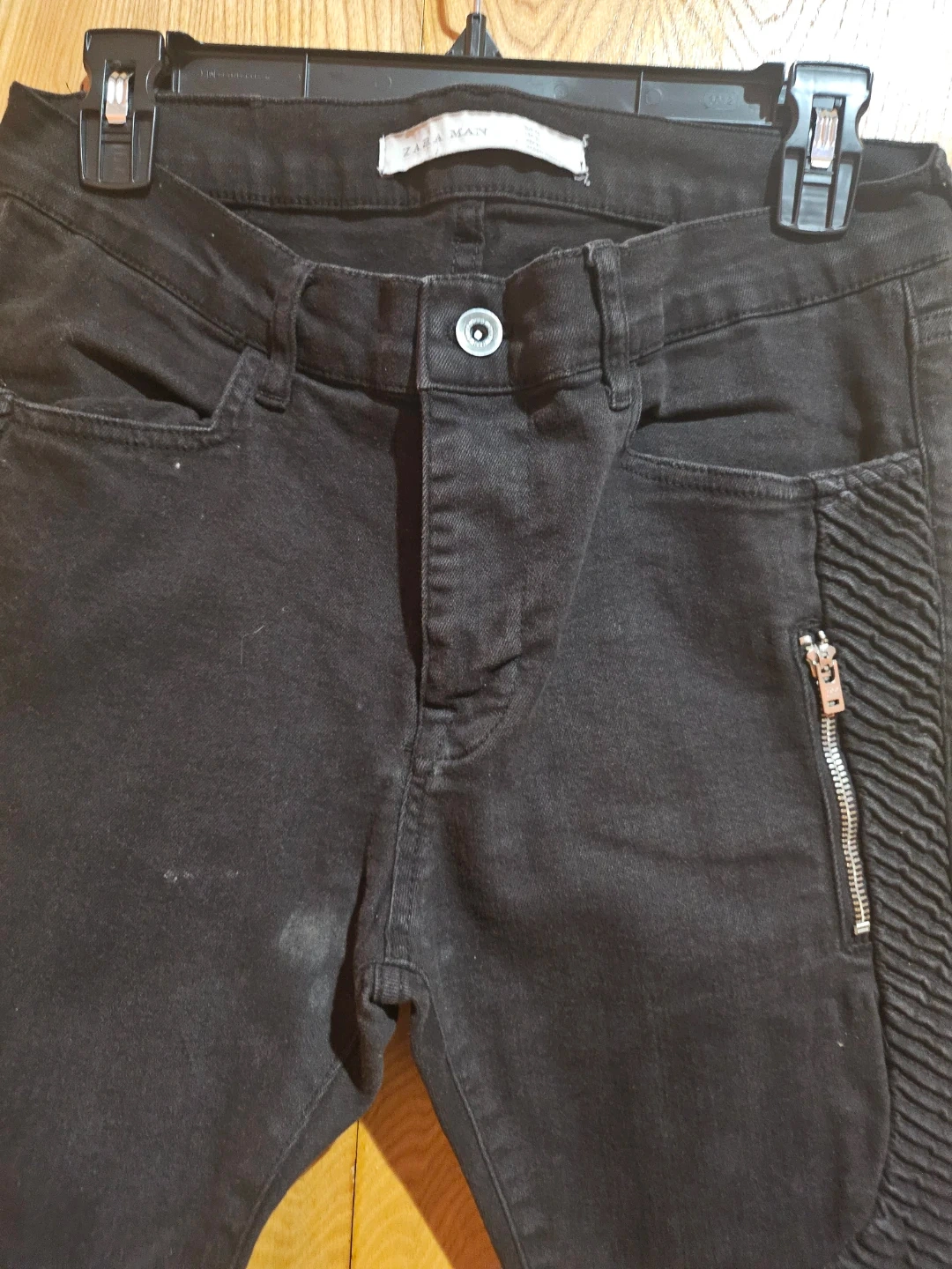 24These are Zara Man black jeans in size 31. They show some signs of wear.