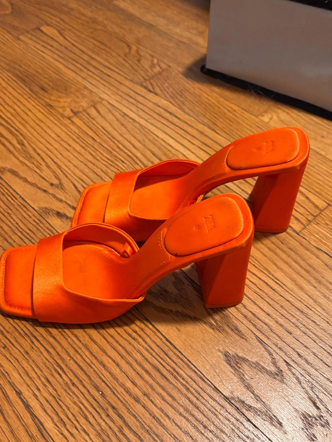 20These are a pair of orange heeled mules from Zara. They're in great condition and ready for a new home!