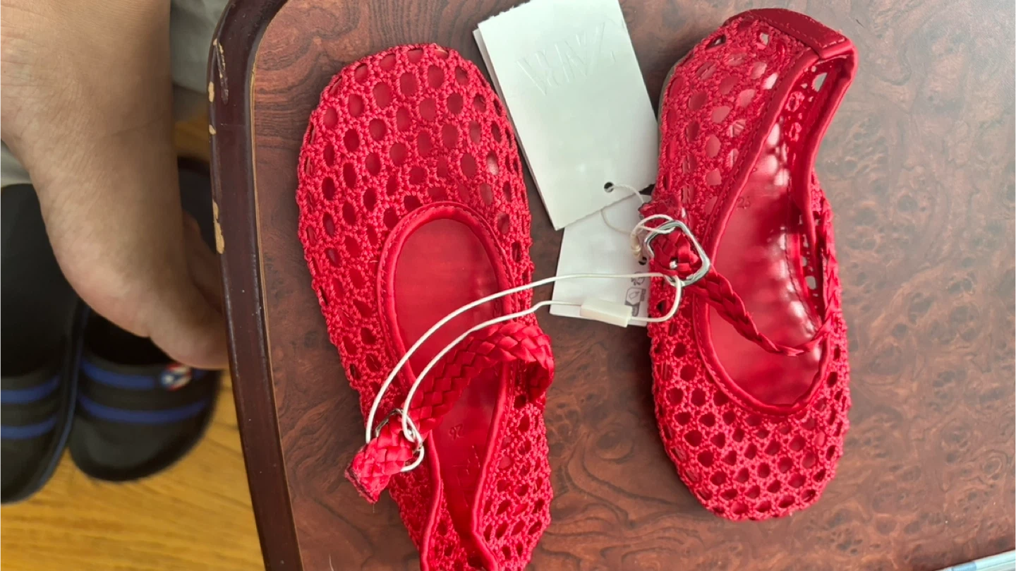60These adorable Zara ballet flats are a vibrant red with a unique mesh design. They are a US size 9.5, perfect for adding a pop of color to any outfit! The original tag is still attached.
