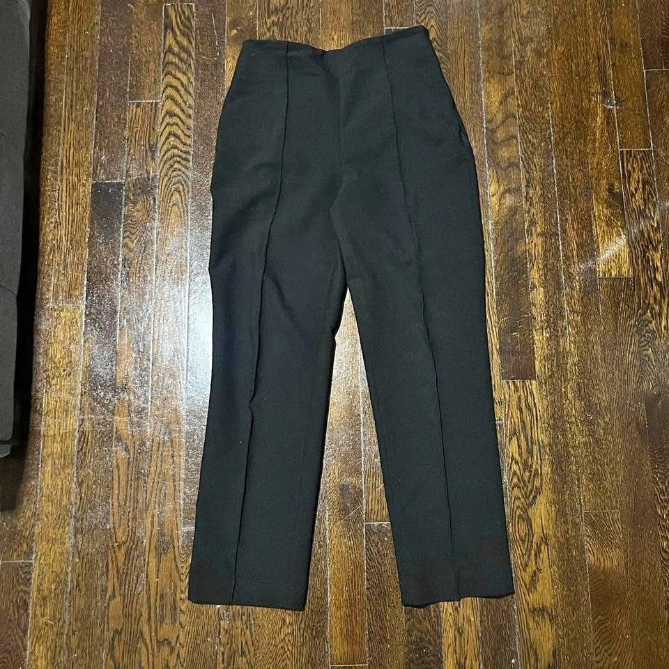 ZARA STRAIGHT LEG TROUSERS PANTS COLOR BLACK SIZE WOMENS XS PREOWNED CONDITION 9/10 NO MAJOR FLAWS AS SHOWN waist: 14 inches length: 37 inches inseam: 26 inches leg opening: 7 inches straight leg, black trousers, tailored pants, high-waist, minimalist, office wear, casual chic, cropped fit, sleek silhouette, preowned