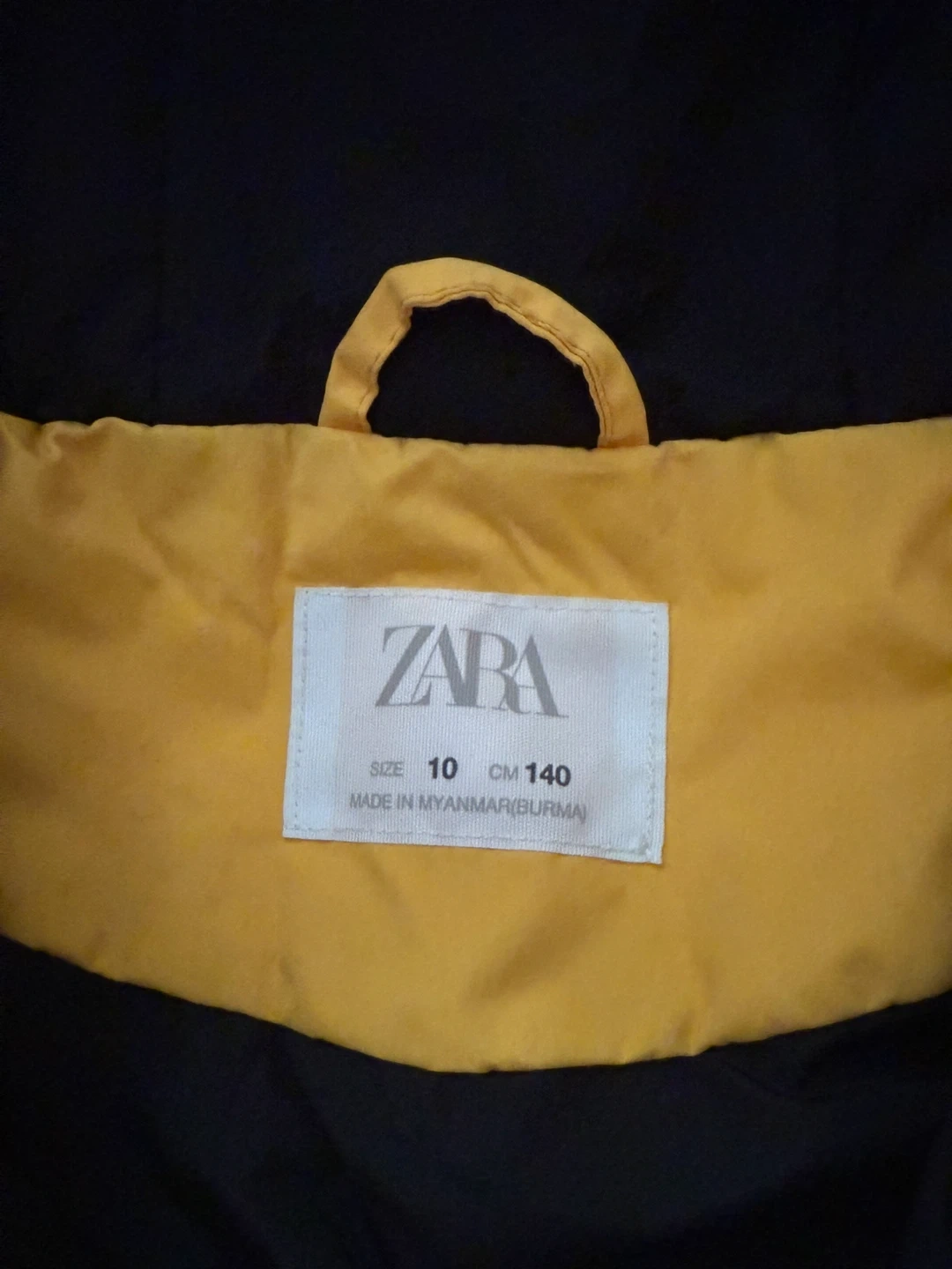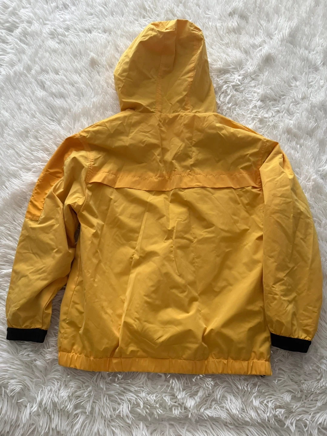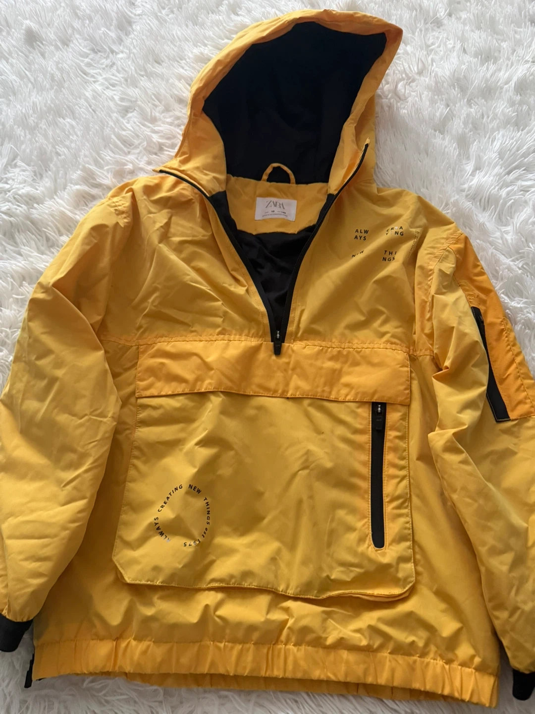This is a Zara anorak jacket in yellow. It's a size 10 (CM 140). It has a hood and a front pocket. Great for layering! Worn once.