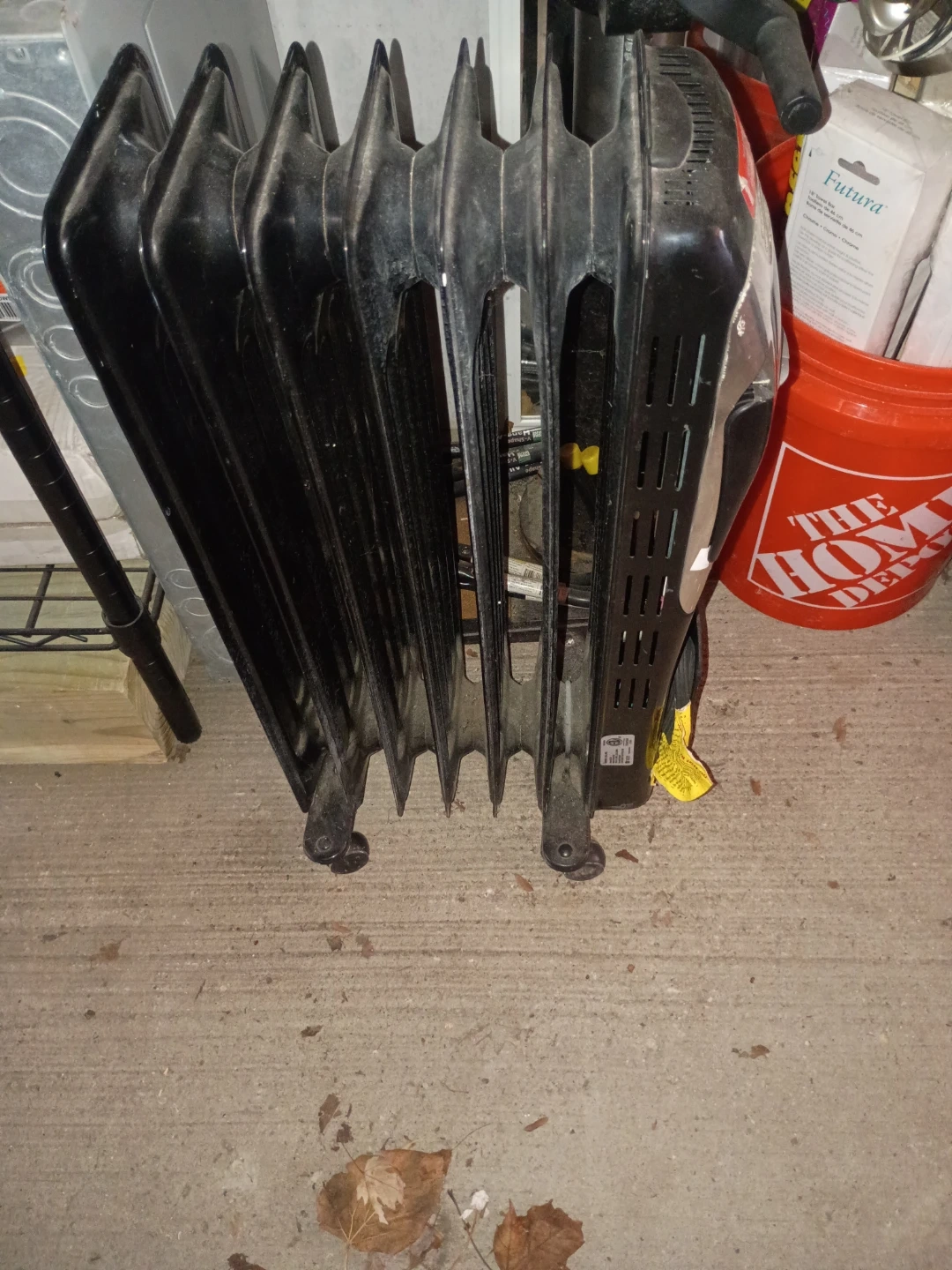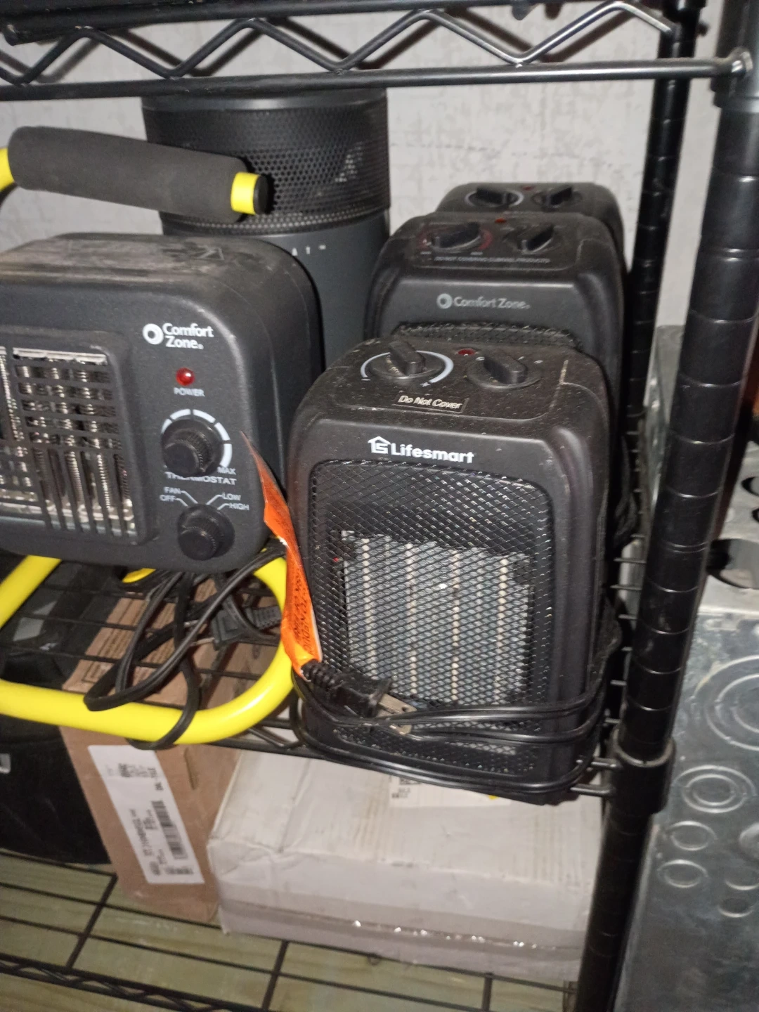 This is a Comfort Zone oil-filled radiator space heater. It's black and designed to provide efficient heating. It has adjustable thermostat controls for temperature regulation. It's useful for warming up rooms.Also have different smaller heaters all different prices
