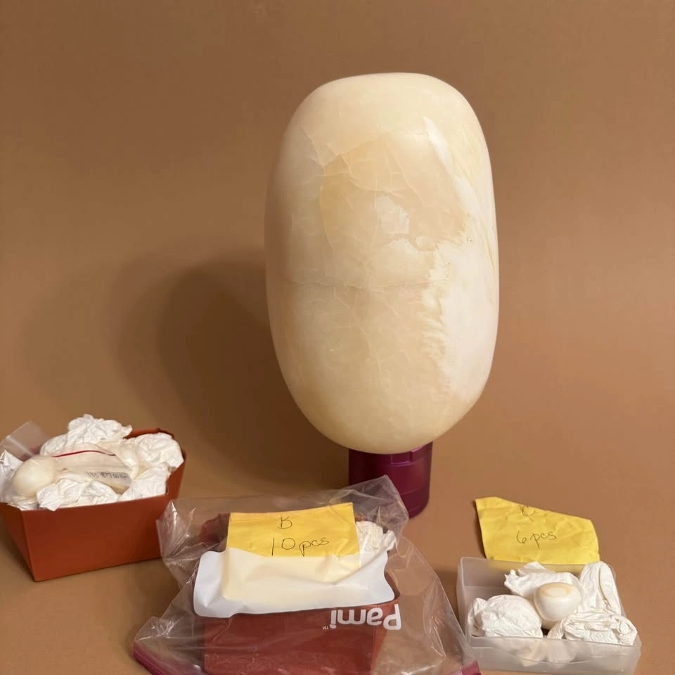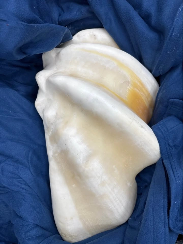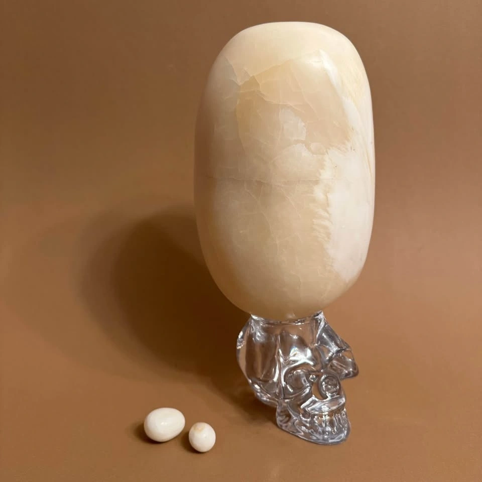 Selling this beautiful vintage heavy onyx egg, 19 lb and 9.5" long. Translucent under light with beautiful natural veining. A unique one-of-a-kind natural accent piece. I have more smaller decorative eggs and a bigger stone piece in the shape of a shell (solid 120lbs) π. Iβm located in Brooklyn.