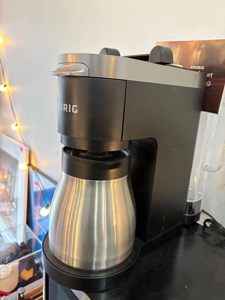 Brews both K-Cup pods and coffee grounds. Brews 6, 8, 10, or 12oz single cups or 6, 8, 10, or 12-cup carafes. The 12-cup glass carafe is designed to limit dripping. You can also set the programmable carafe auto brew up to 24 hours in advance.