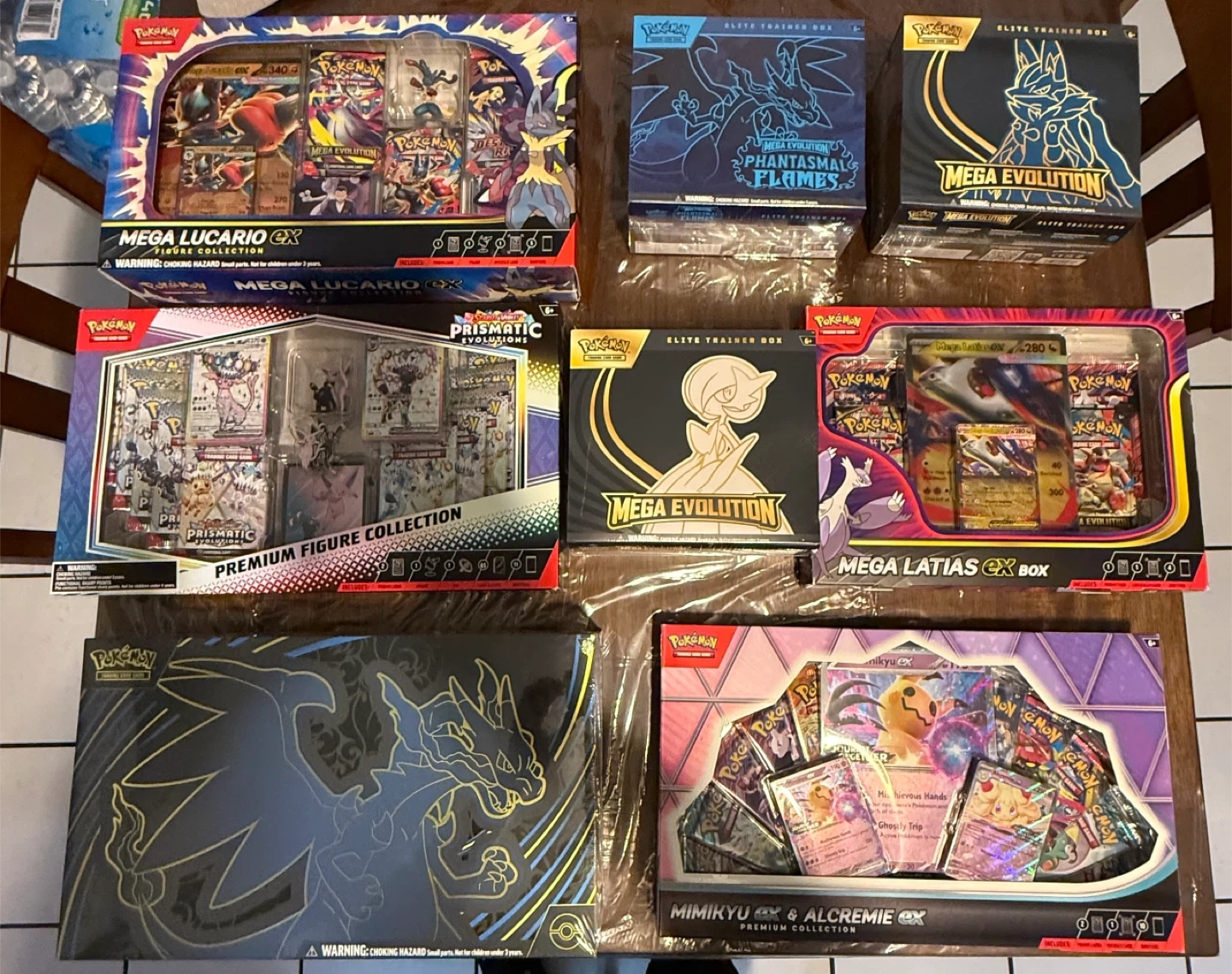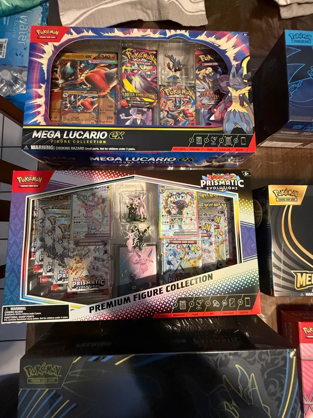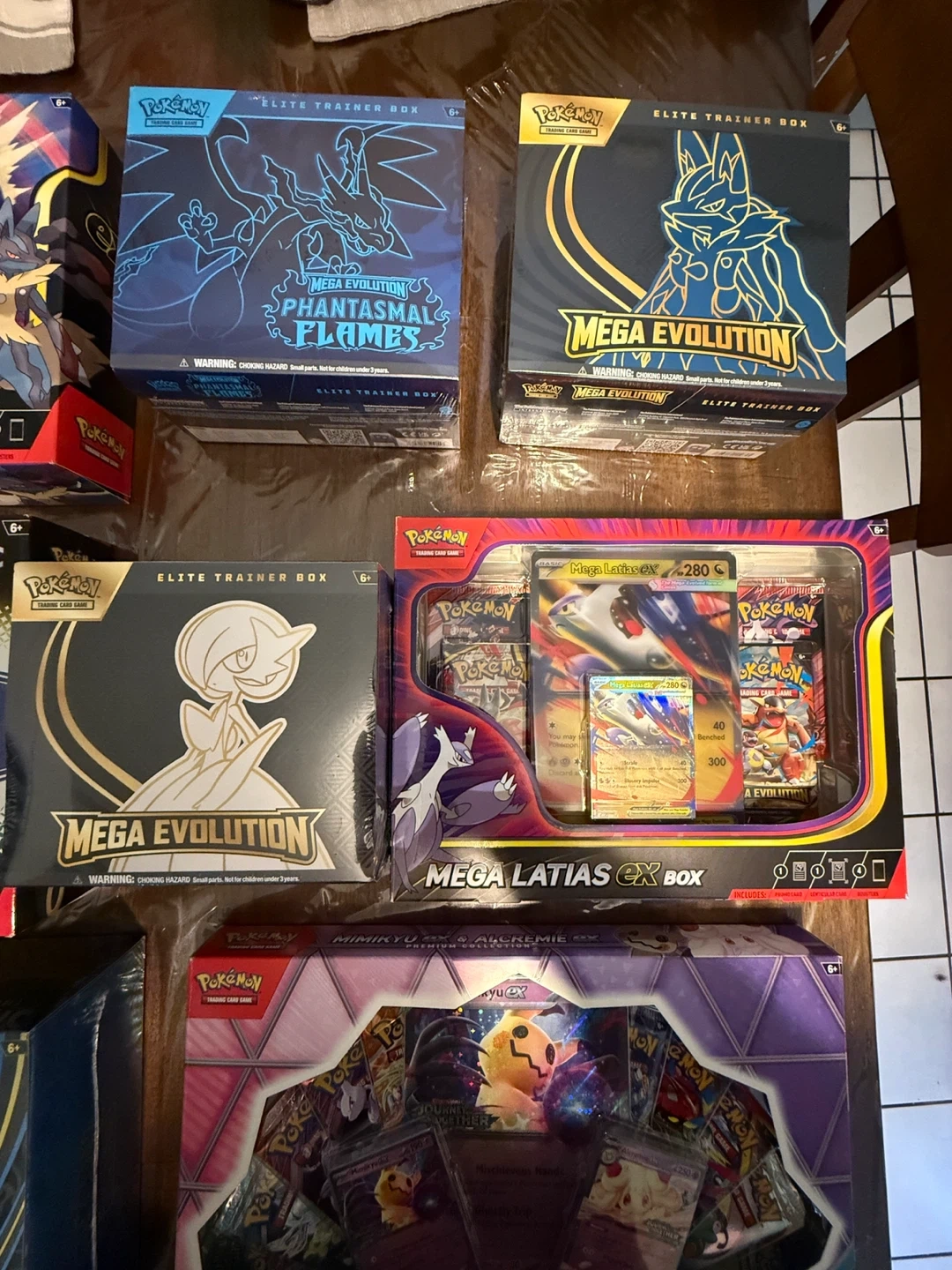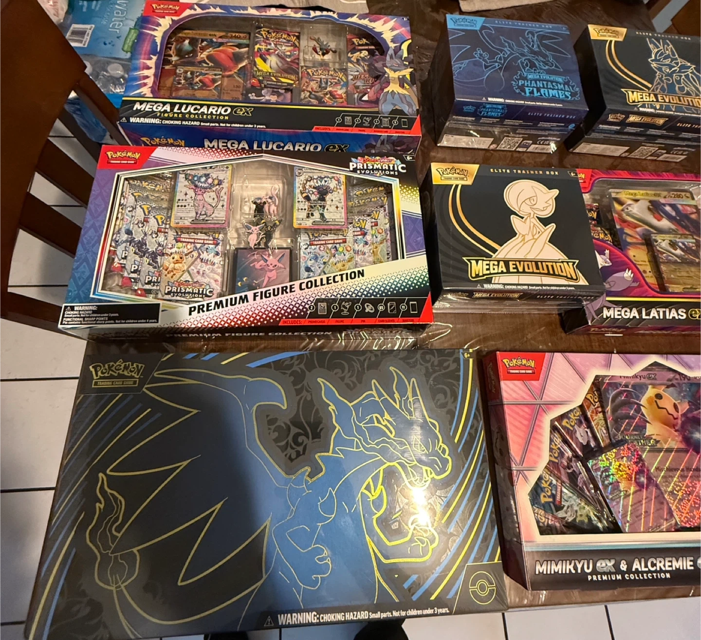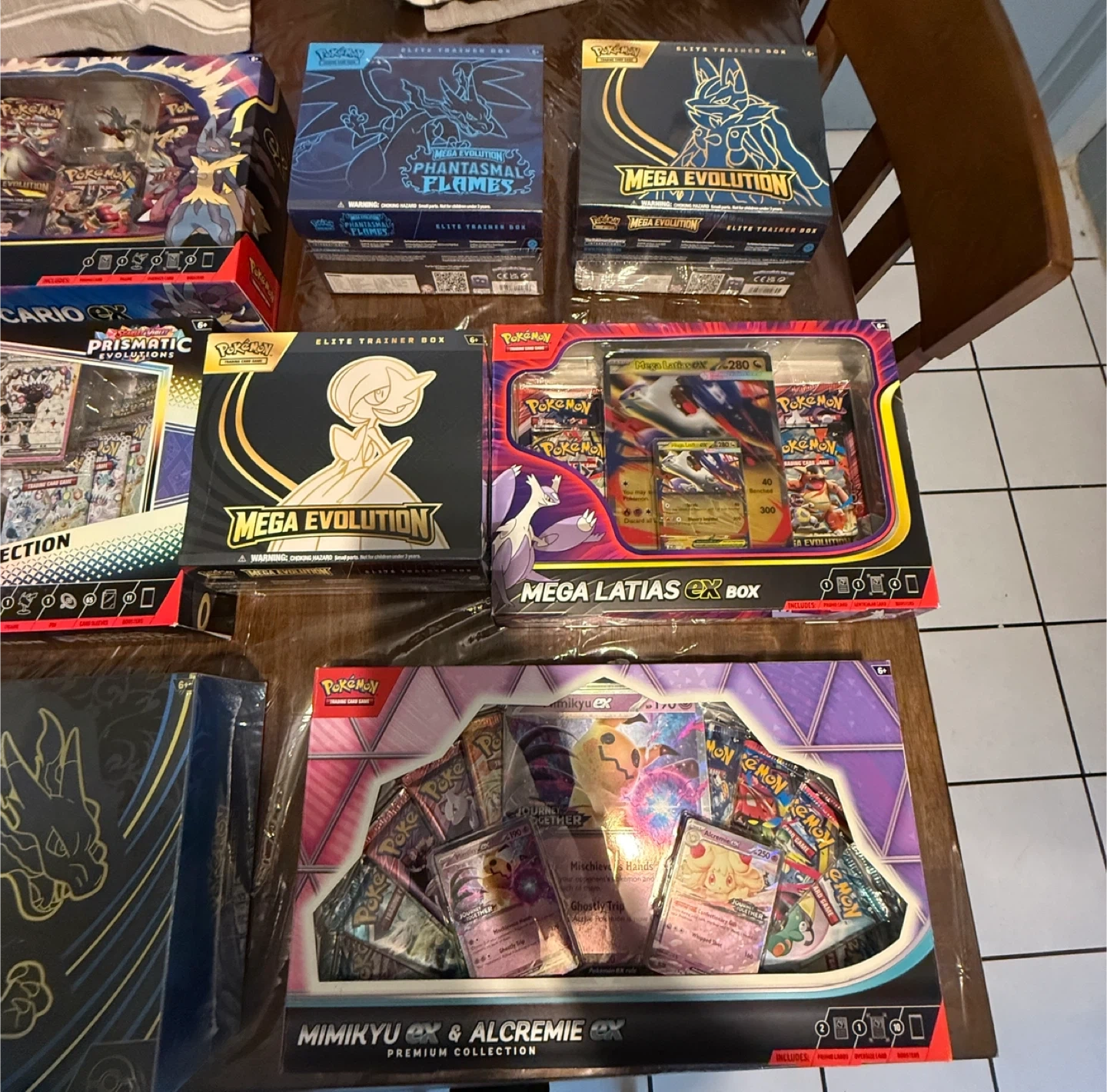 Selling a variety of Pokémon Trading Card Game items! There's a mix of Elite Trainer Boxes and Premium Collections, all ready for a new home. Great for collectors or players looking to expand their collection. Each box is unopened and contains various booster packs and accessories