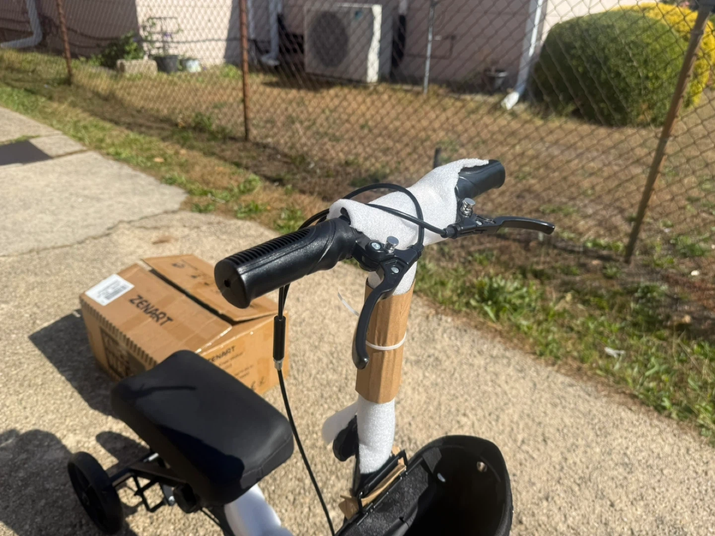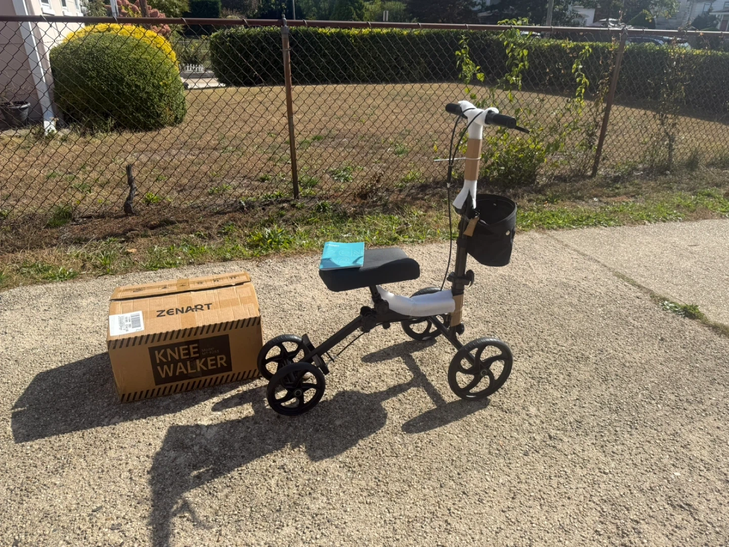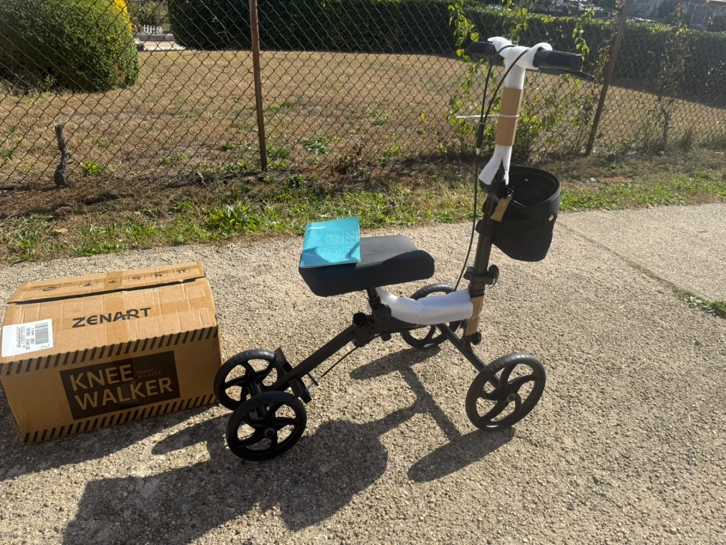 65Brand new in box, ready packaged, unused. New & Assembled: Taken out of the original box and fully put together, ready to use. (Original box is also available.) • Knee Support: Features a soft, ergonomic knee pad to rest the injured leg and distribute weight evenly. • Easy Maneuverability: The four-wheel design is stable and allows you to move easily both indoors and outdoors. (Features large wheels, visible in the photos.) • Safe Braking System: Includes an easy-to-reach hand brake for reliable stopping and safety. • Extra Convenience: Comes with a detachable basket to comfortably carry your personal items (water bottle, phone, etc.). • Adjustable: Both the handlebar and knee pad height are adjustable, allowing you to find the perfect position for your height. 📏 Technical Details (Model: Zenart MT-9253): • Condition: New (Box opened, fully assembled.) • Brand/Model: Zenart / MT-9253 • Wheel Count: 4 • Color: White/Black