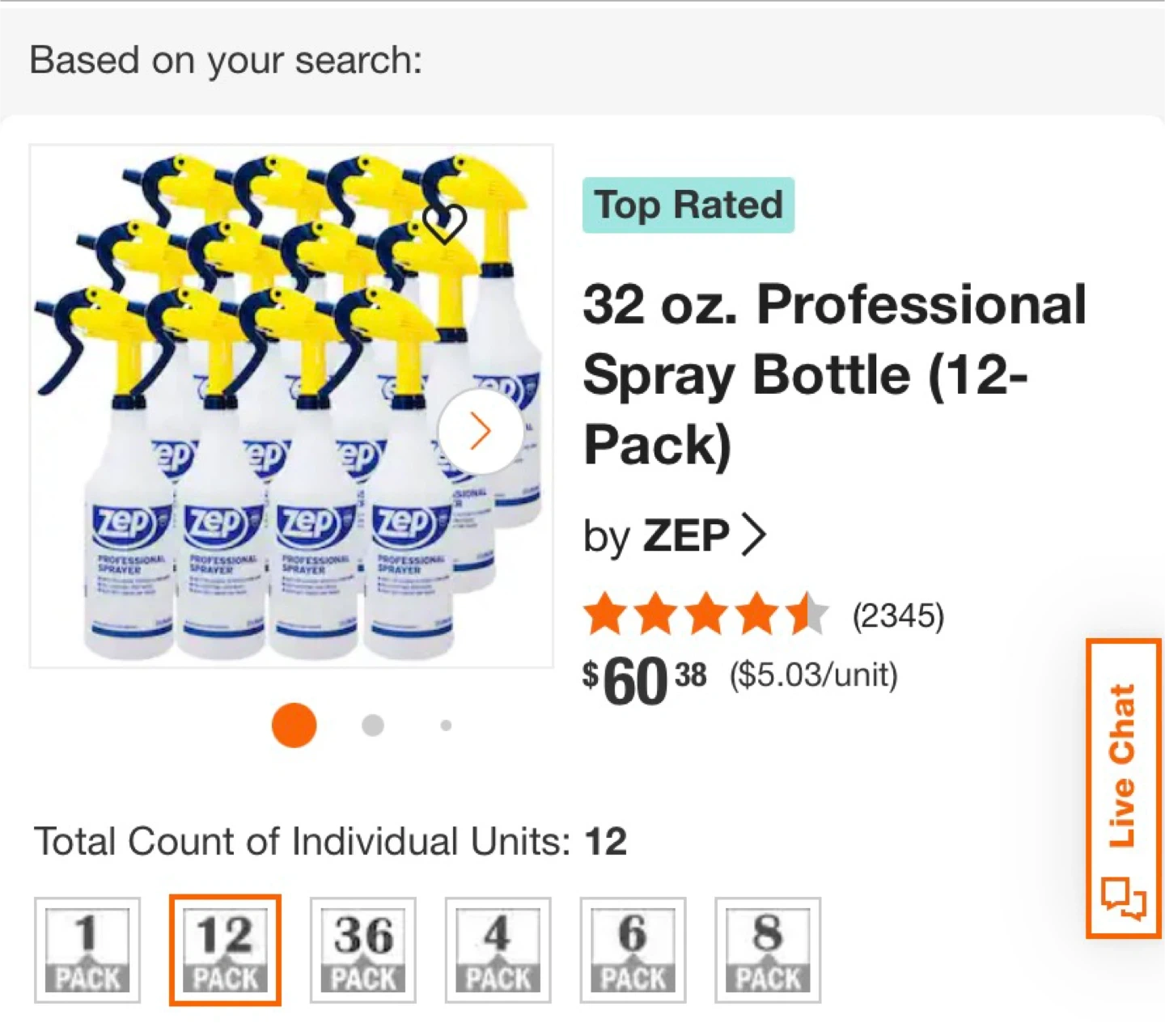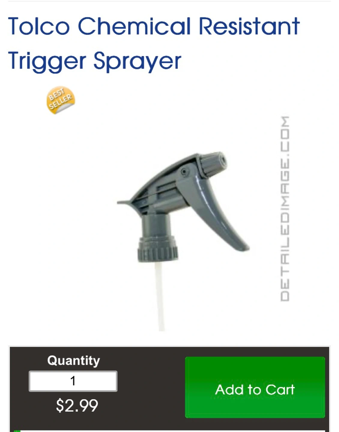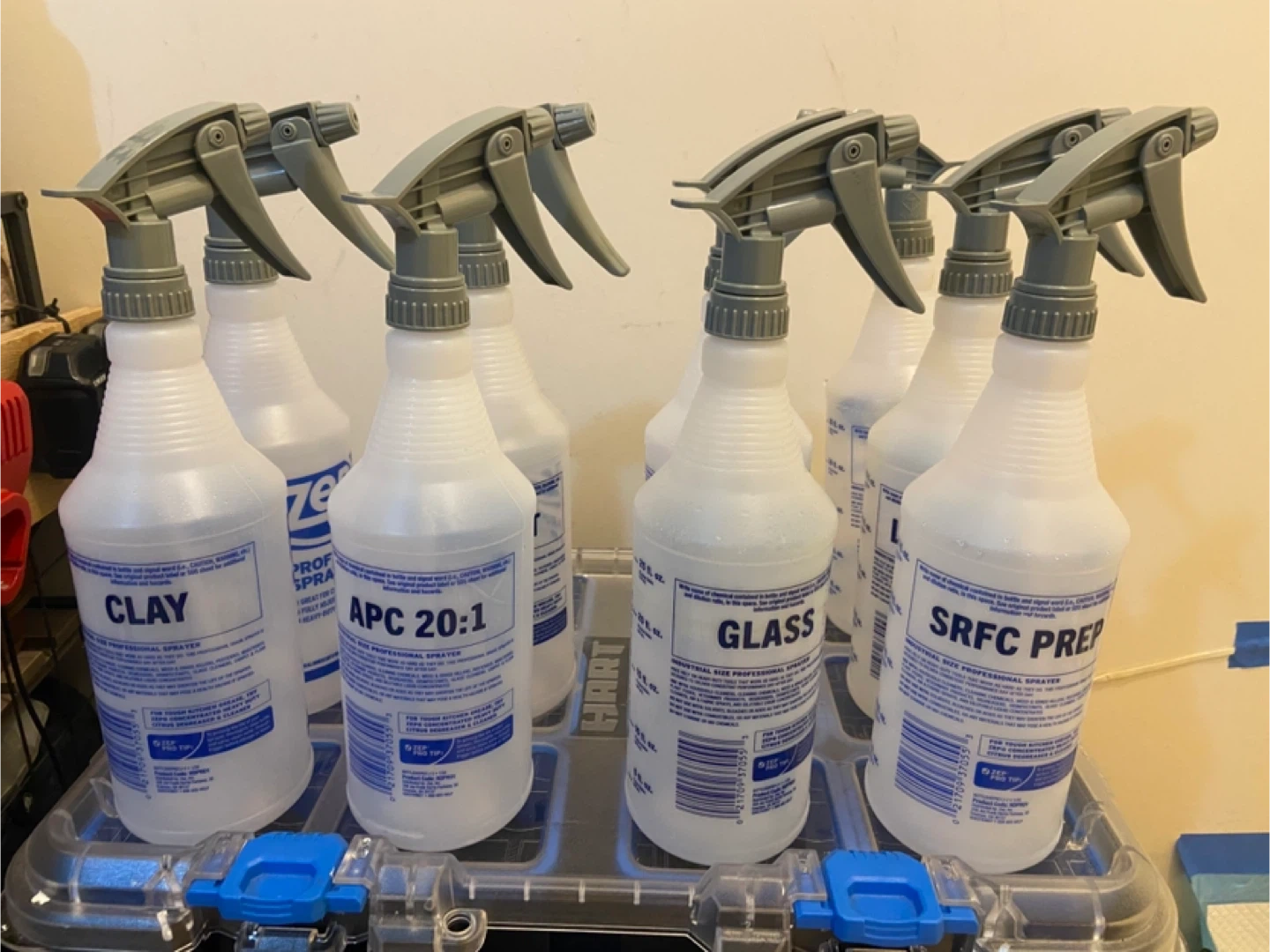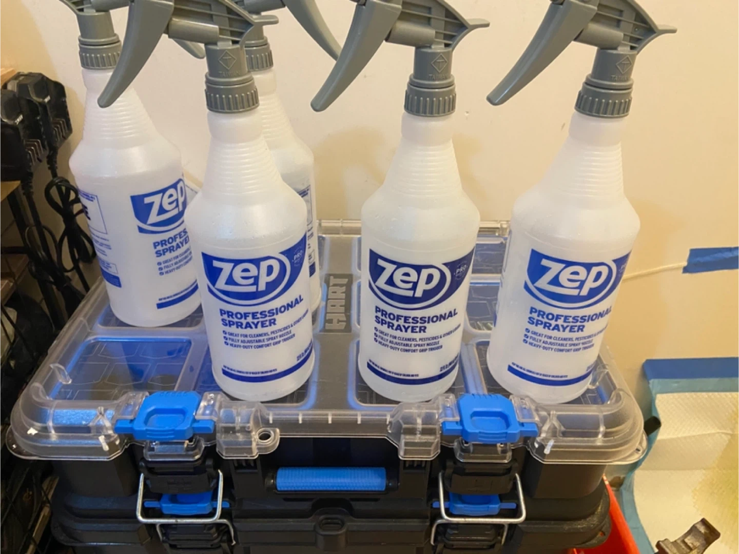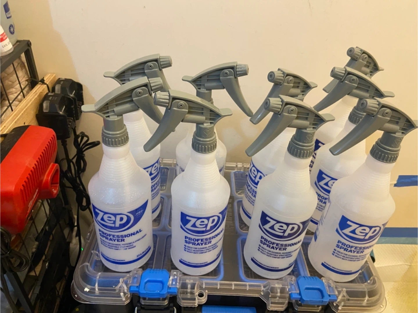 I have several (10 bottles) ZEP professional sprayer bottles available. They are great for cleaning, pesticides, and more. They have a fully adjustable nozzle for heavy-duty comfort and spray with car detailing labels