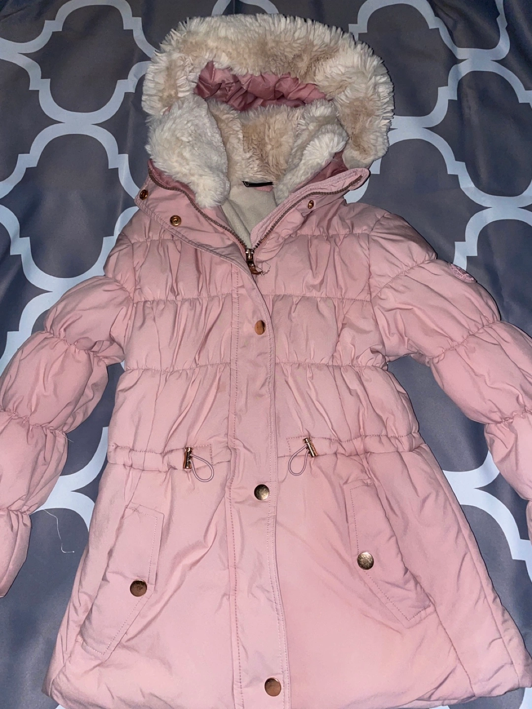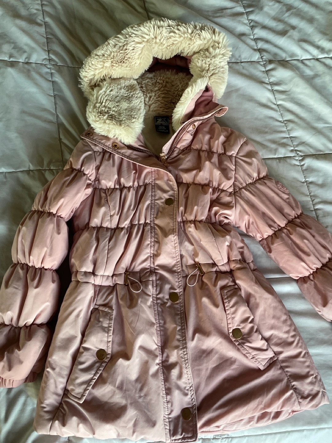 Selling a cute ZeroXposur girls' puffer jacket! It's a stylish and warm jacket, perfect for keeping your little one cozy during colder weather. The jacket features a faux fur-trimmed hood and a unique design. In excellent condition.