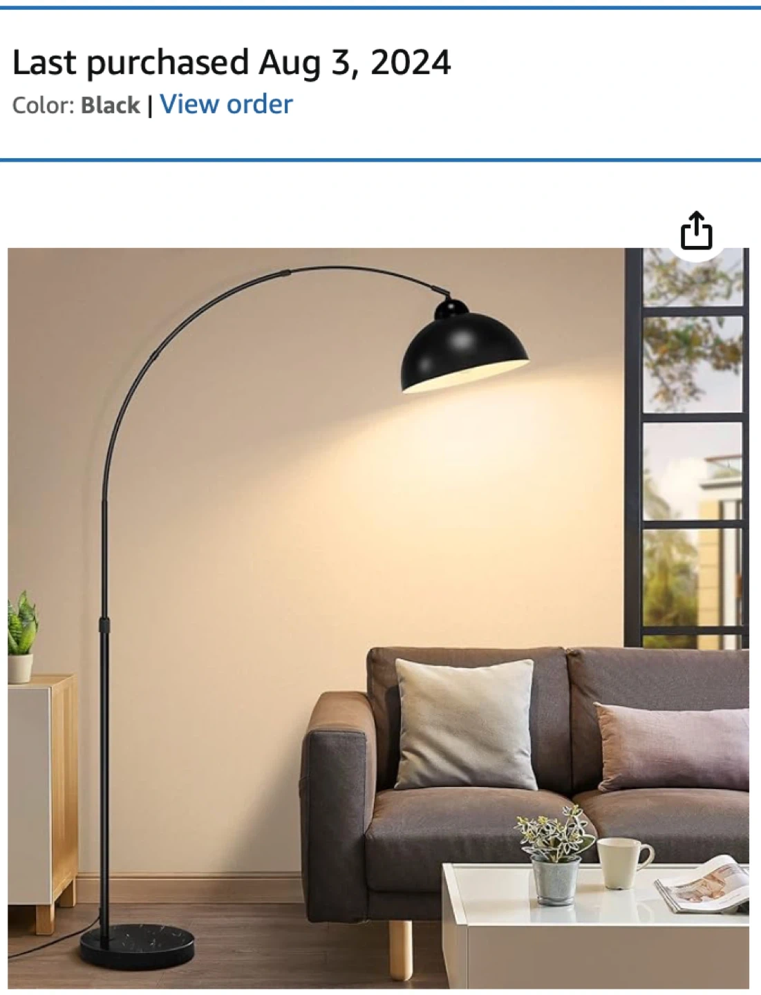 Selling a really nice arc floor lamp. Black metal dome shade with a marble base, adjustable height. Looks great in a living room or office. Paid $65 last August.