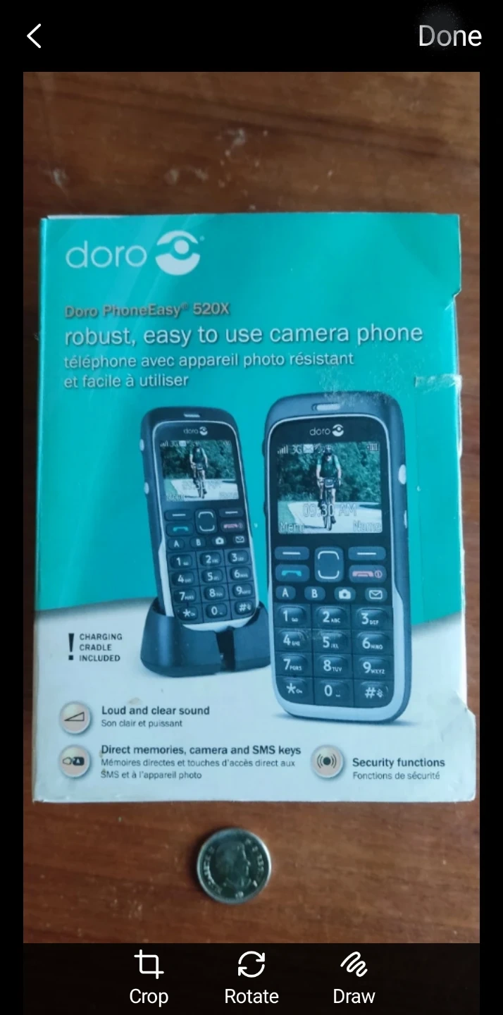 This Doro PhoneEasy 520X is a robust and easy-to-use camera phone. It comes with a charging cradle, headset, lanyard, and USB cable. The phone offers loud and clear sound, direct memories, camera and SMS keys, and security functions. Designed for Seniors and hearing impaired folks.