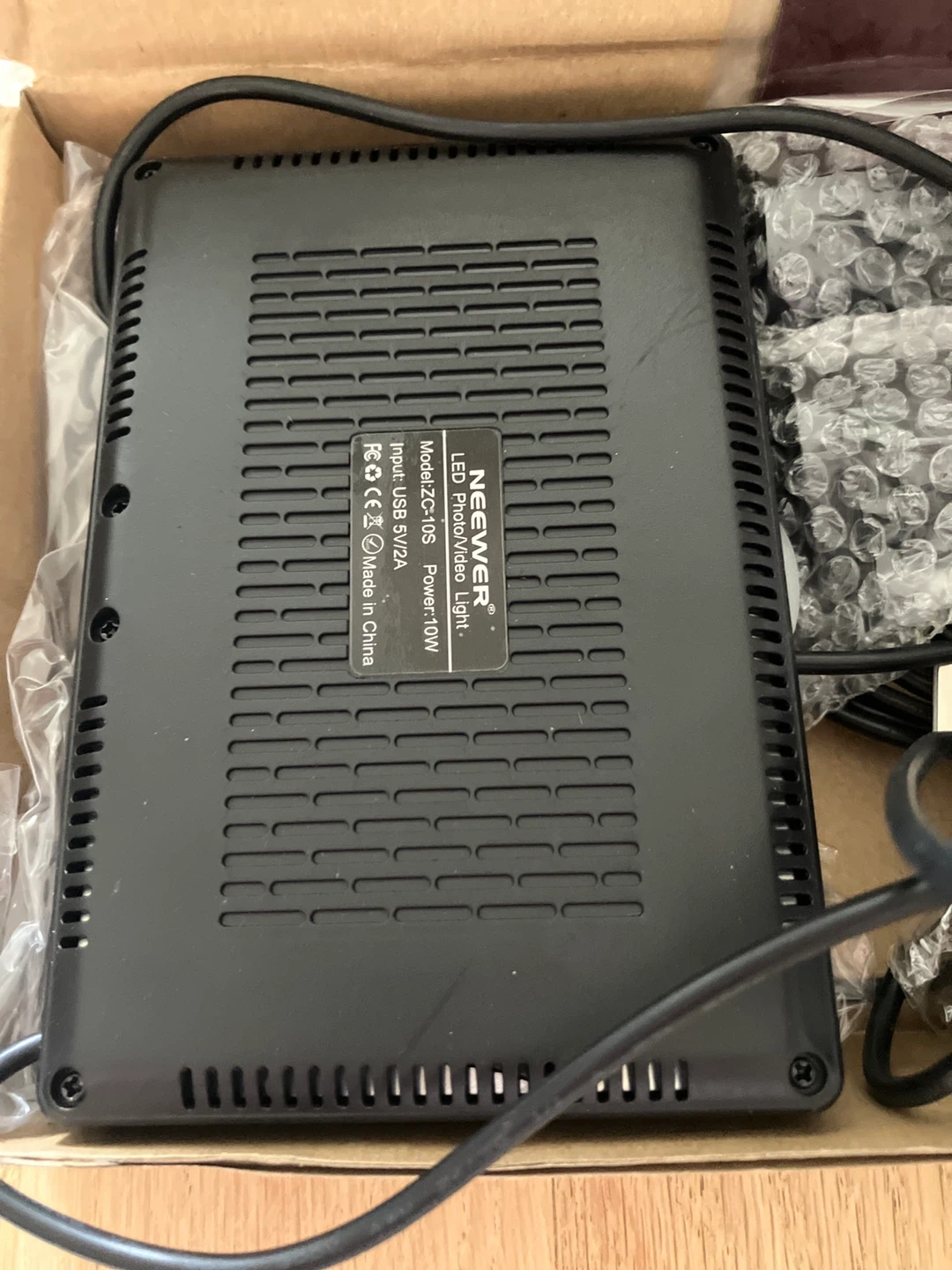 Selling a new Neewer 2 Packs Portable LED Photo/Video Light kit! It comes with the box and all original components. Model number is ZC-10S. Power is 11W, and it uses a USB 5V/2A input.