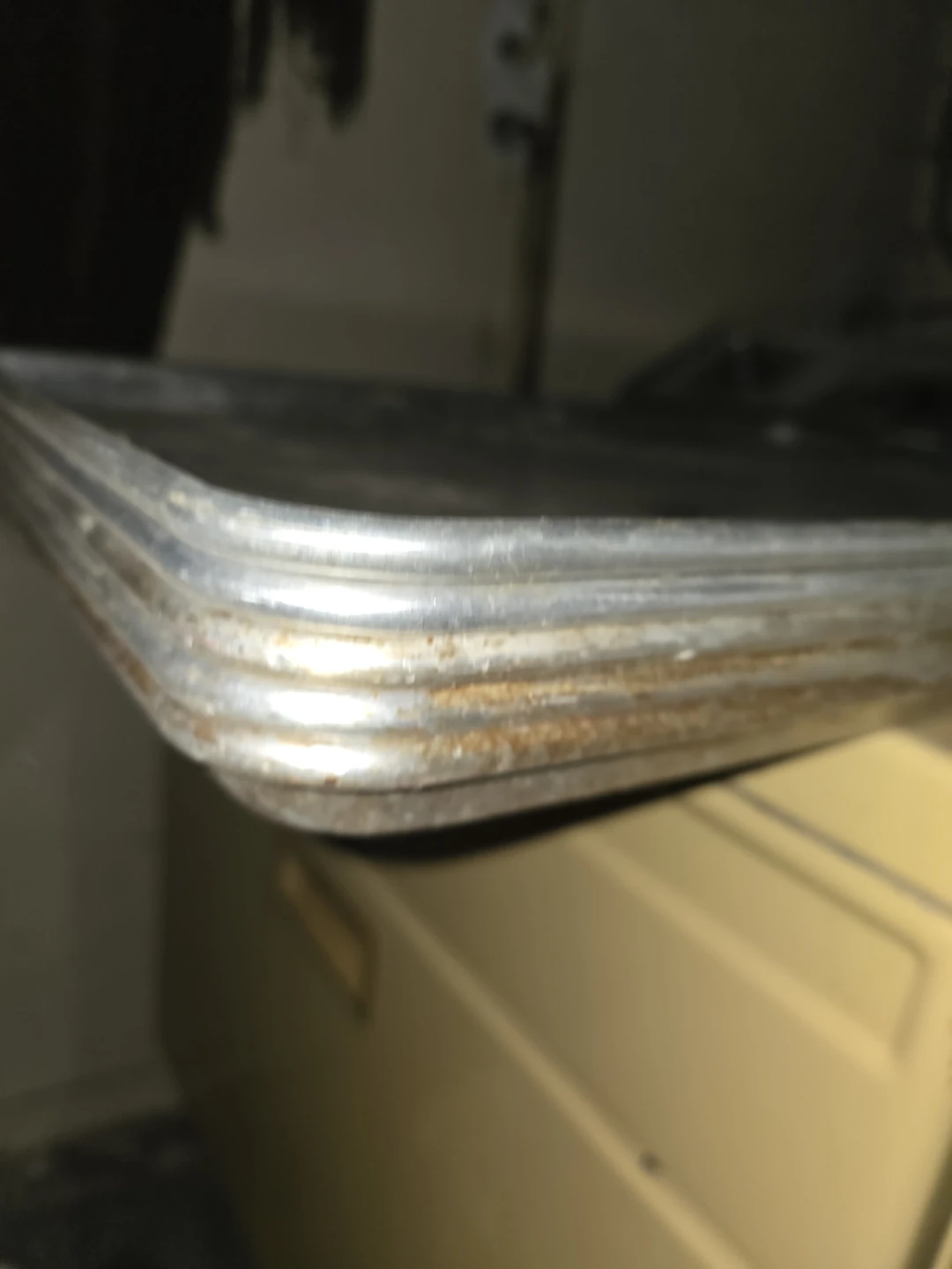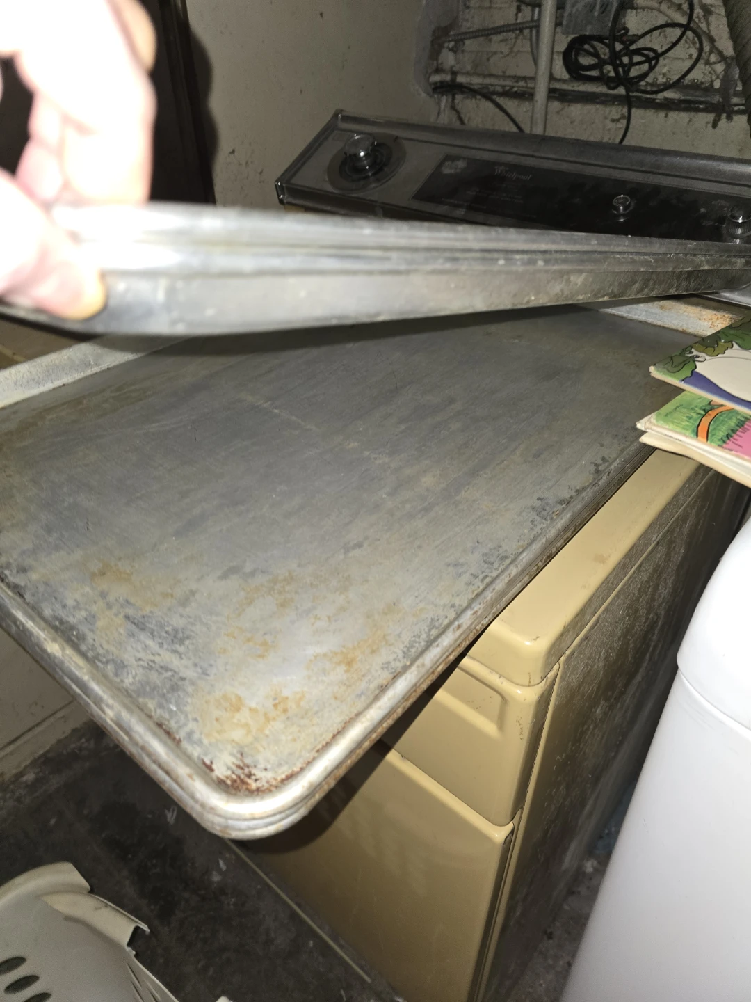 This is a large, durable metal baking sheet. It's suitable for all your baking and roasting needs. Material is aluminum. This sheet has seen some use and shows signs of wear, including minor scratches and some discoloration. Pizza racks cutting board big spoons and ladels water steam food warmer for party trays catering metal and plastic cold cuts containers 250 or best offer cash pick up 7.0.8.3.4.7.6.3.3.0