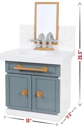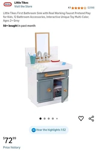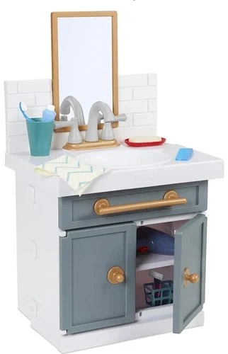 This is a playful and educational toy designed for children aged 2 and above. Made by the trusted brand Little Tikes, this child-sized sink encourages imaginative play and allows young children to practice proper bathroom routines in a fun way. It works and has been cleaned with a vinegar solution. Some toys might be missing, but we kept the faucet dry and clean.