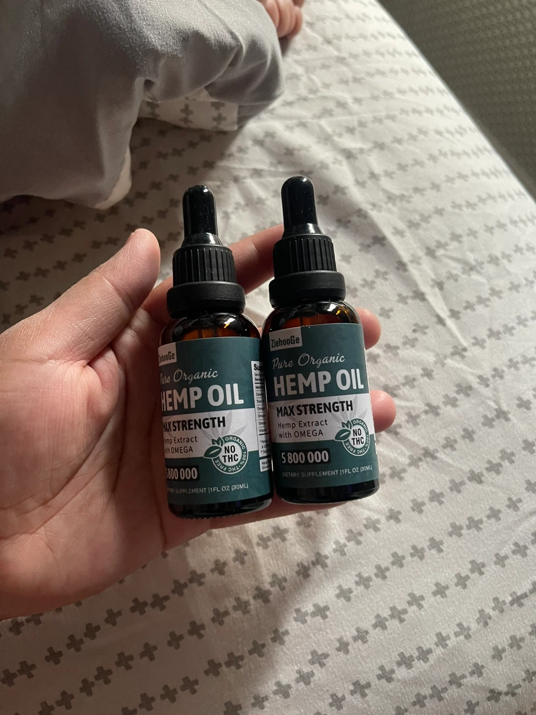67Selling two bottles of ZiehooGe Pure Organic Hemp Oil, Max Strength. Each bottle contains 1 fl oz (30ml) of dietary supplement with Hemp Extract and Omega. They're both organic and THC-free