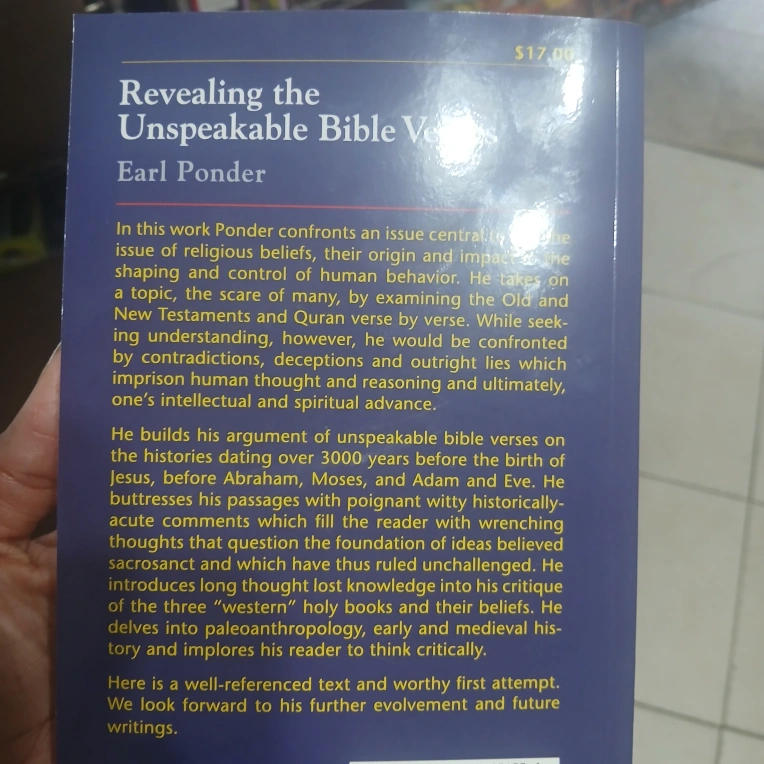 Selling "Revealing the Unspeakable Bible Verses" by Earl Ponder! It delves into the truth about Judaism, Christianity, and Islam, exploring the unholy trinity. A thought-provoking read for those interested in religious beliefs and their impact on human behavior. Originally priced at $17