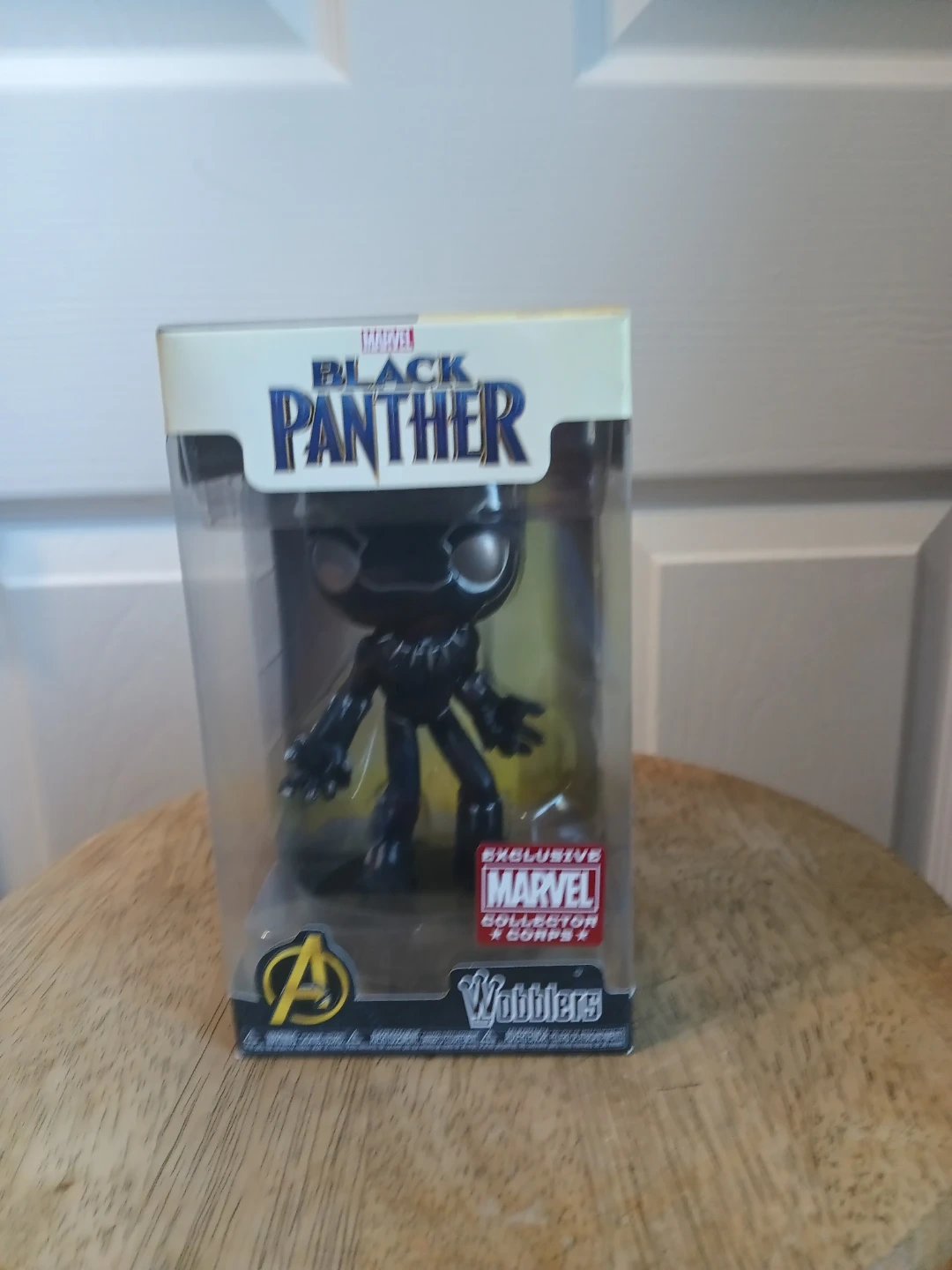 Selling a Marvel Black Panther Wobblers Funko figure! It's in great condition and comes with the original box. A cool collectible for any Marvel fan!