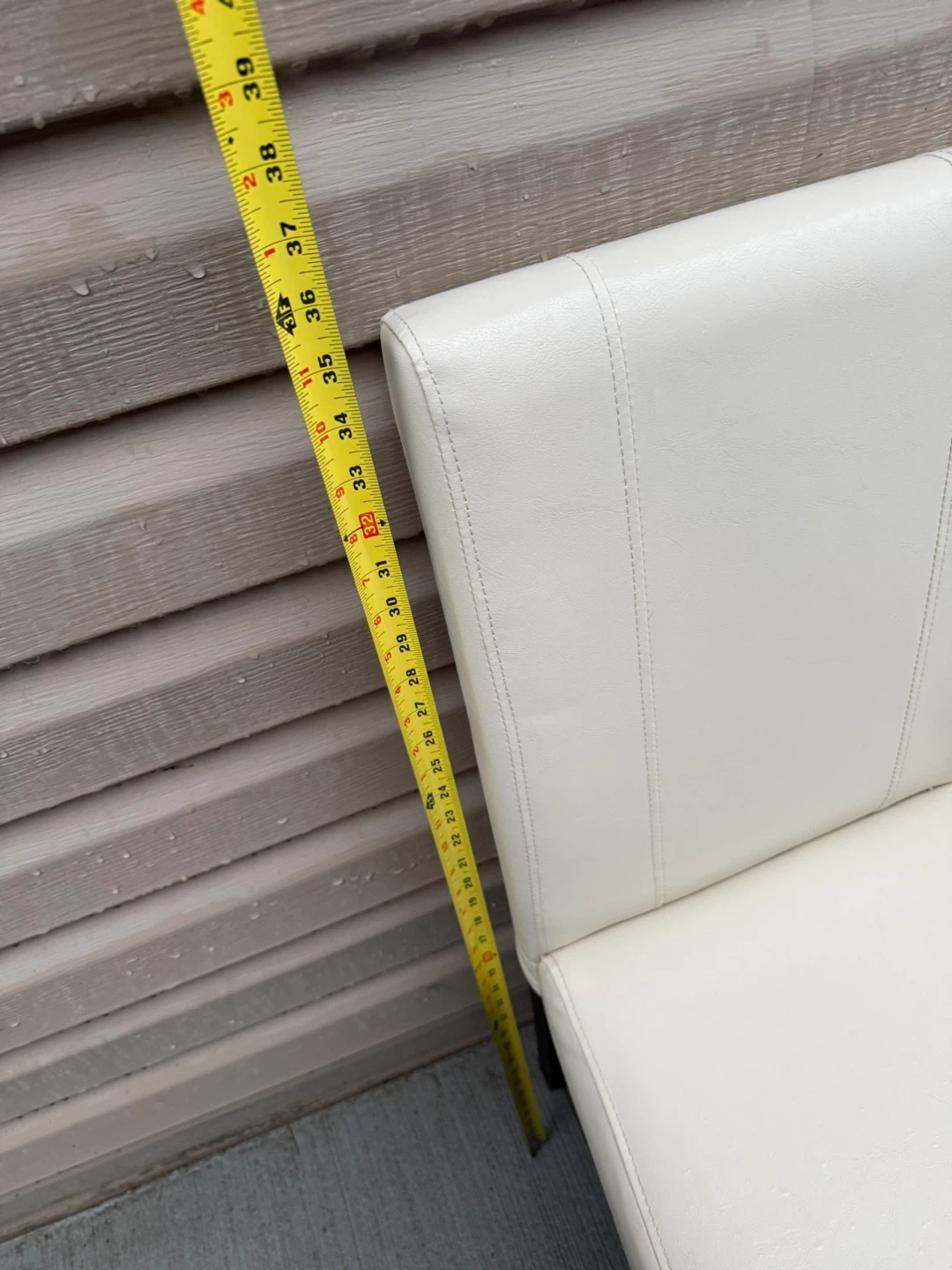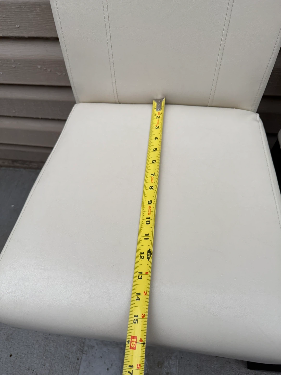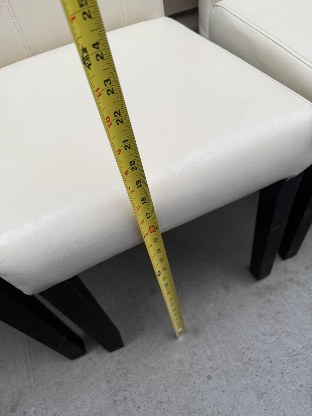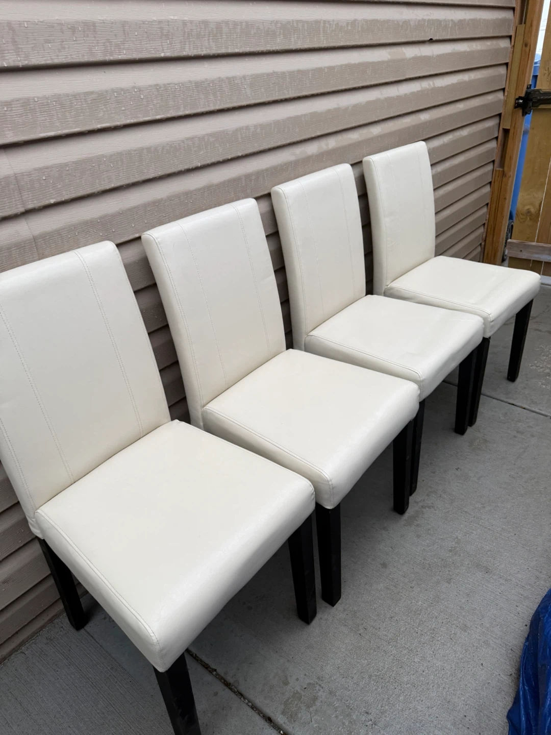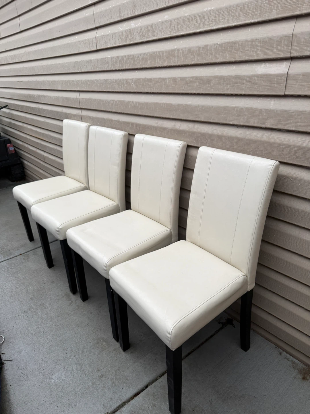 Selling a set of four dining chairs. They have a clean, modern look with white seats and dark legs. Perfect for updating your dining space!