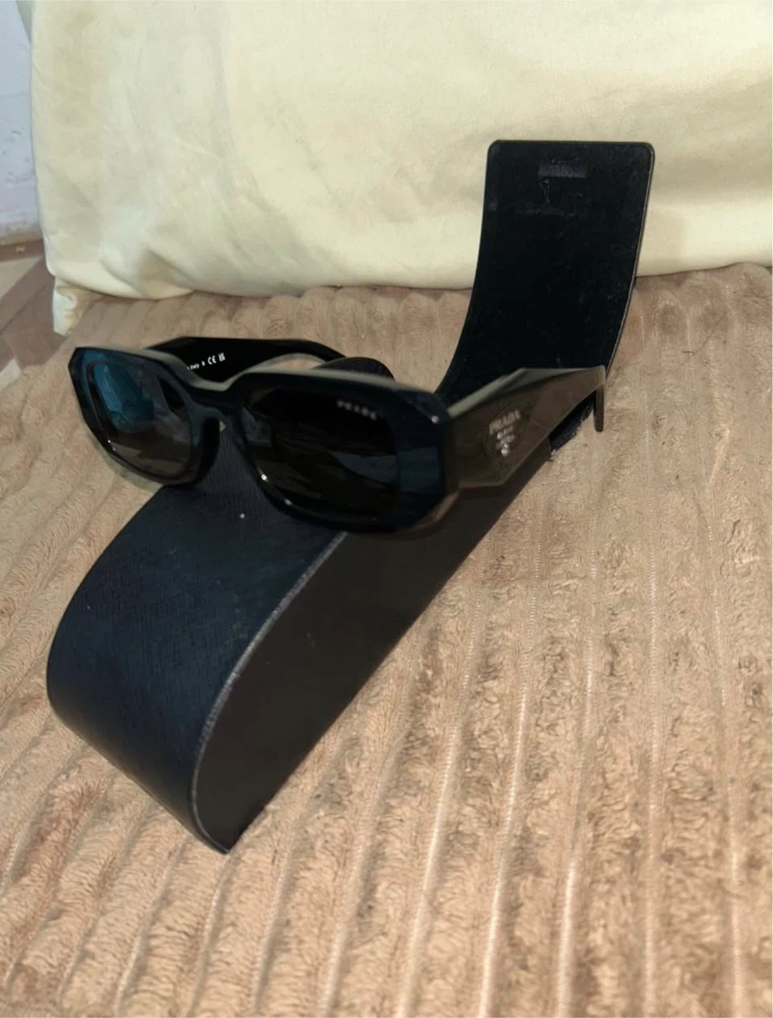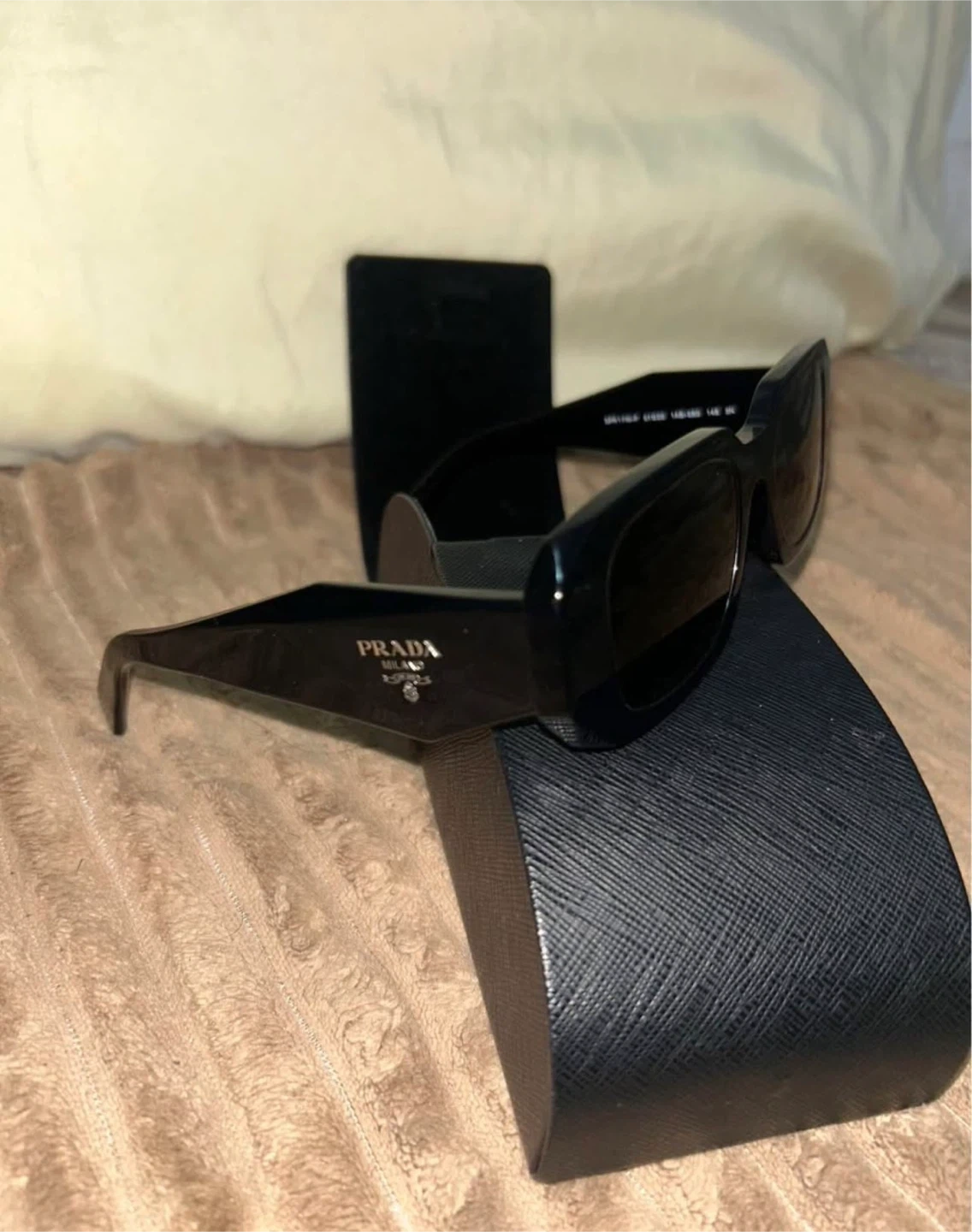 Black Prada sunglasses. Includes original case. Made in Italy. Style is sleek and modern.