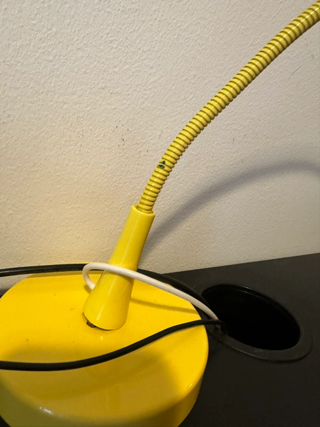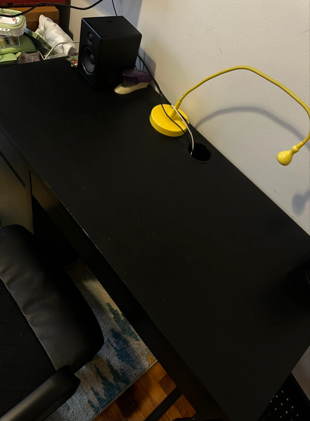 Yellow Ikea Lamp for free—it works just fine though the base is a little wobbly (shown in picture)