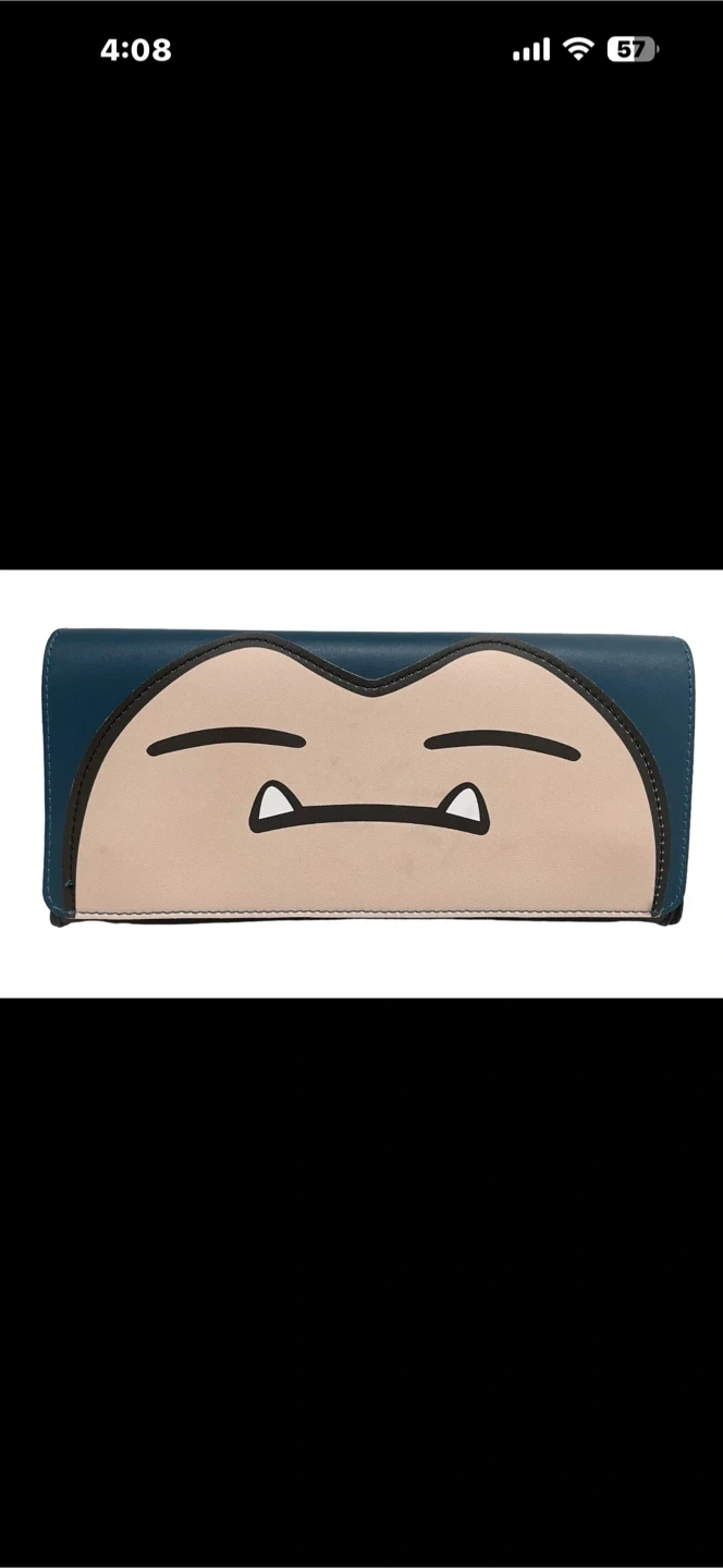 This is a rare Snorlax Nintendo switch leather case. It's teal and tan with Snorlax's face on the front. Multiple card slots inside. A must have for any Pokémon gamer.