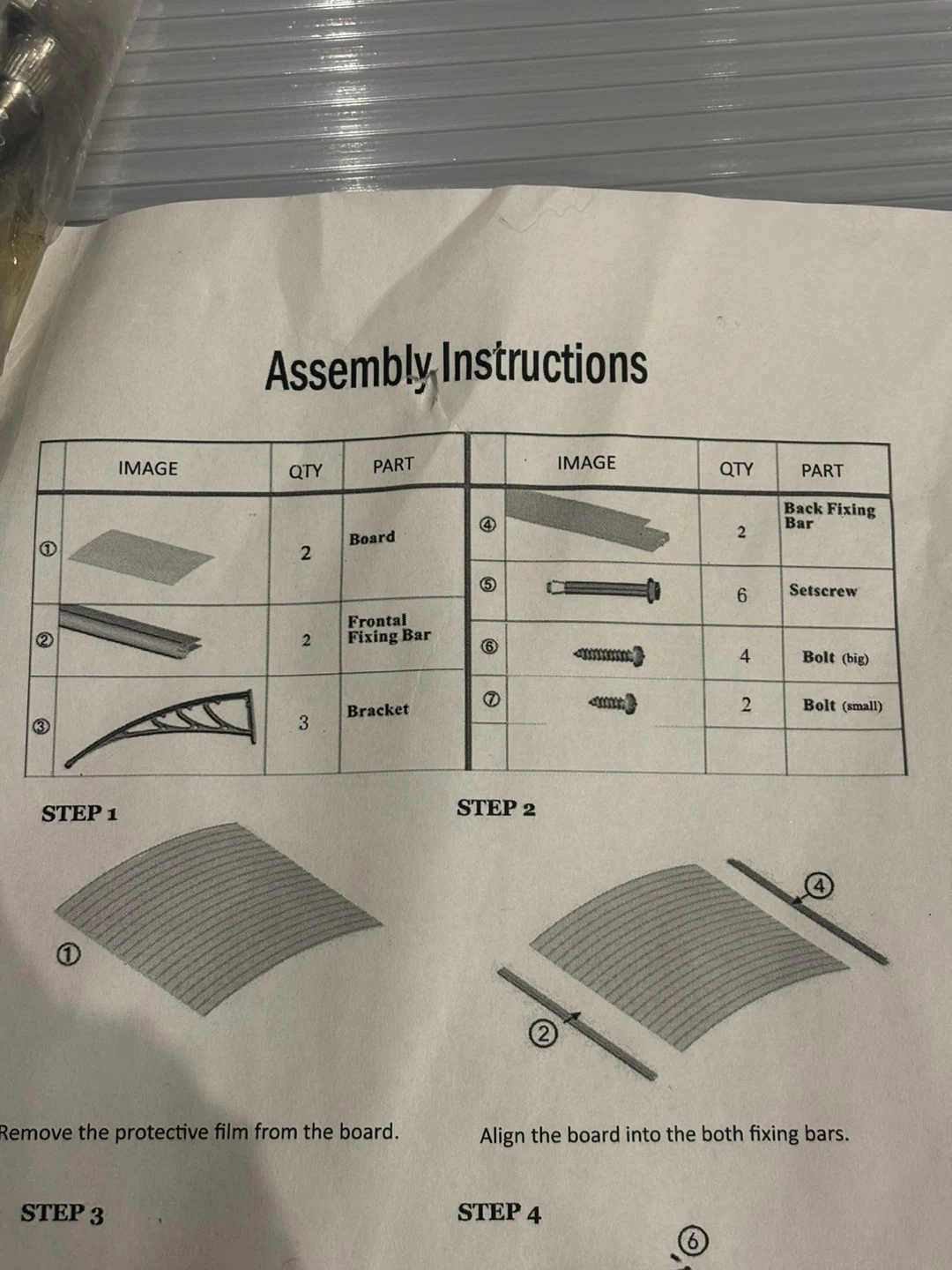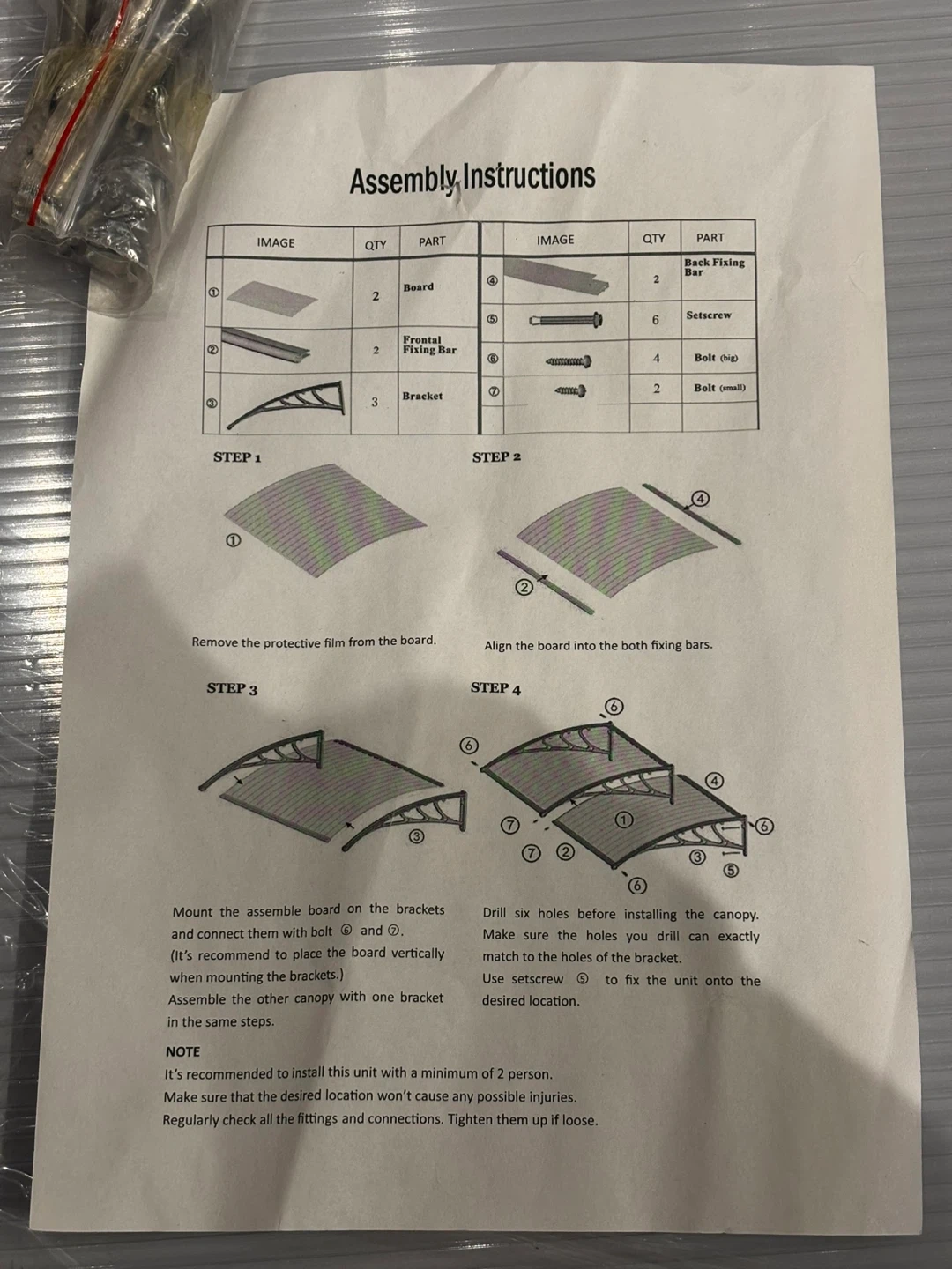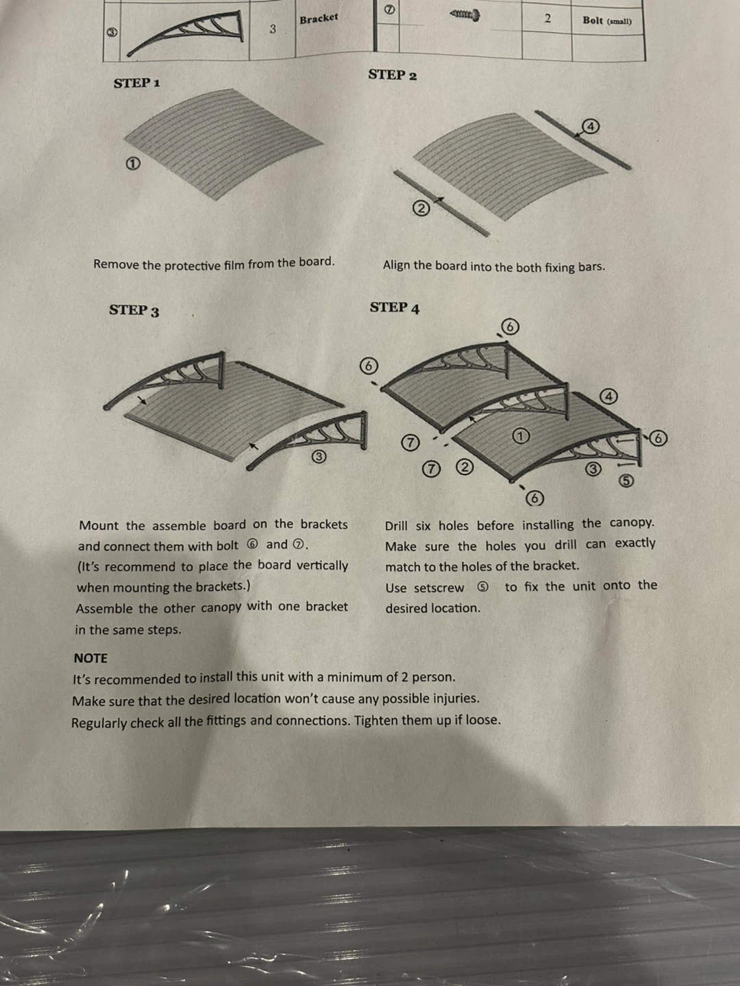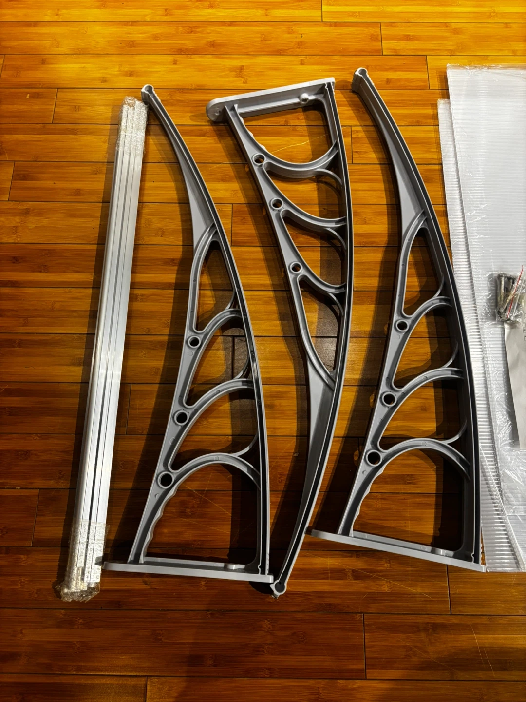 Zeny door canopy kit. Includes grey brackets, clear plastic panels, and hardware. SKU: H01-1240. Protects your entryway from the elements!