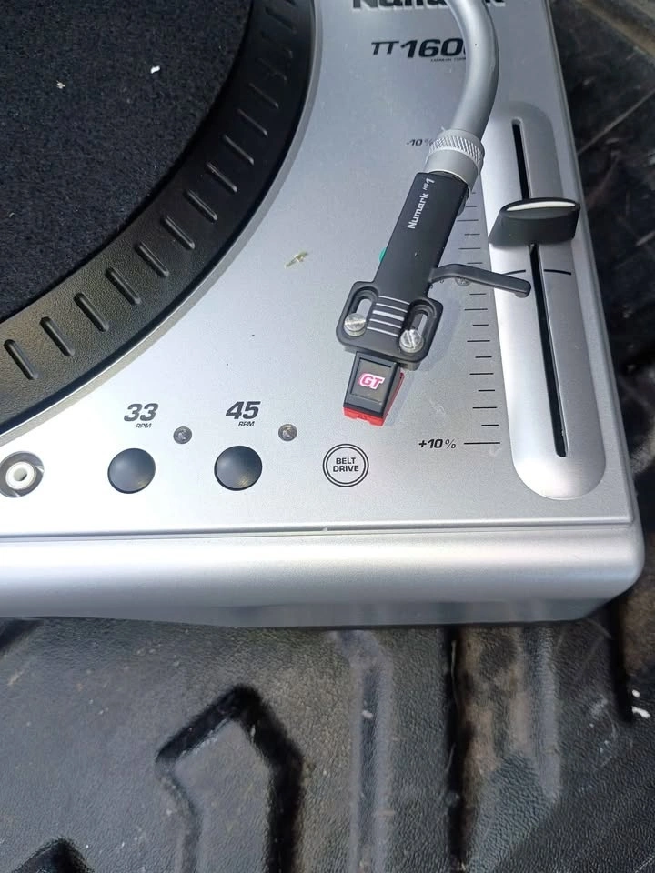 Numark TT1600 Professional Turntable, which is a discontinued model known for its belt-drive motor and features suitable for DJs. The TT1600 MKII offers 33 and 45 RPM speeds with a ±10% pitch range, making it suitable for basic DJing and home listening.