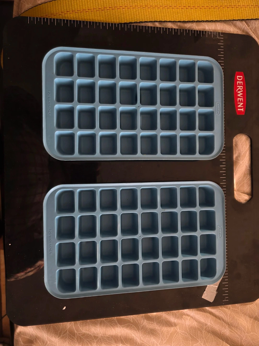 This is an IKEA ice cube tray. It's made of silicone and plastic. It makes 24 small ice cubes.
