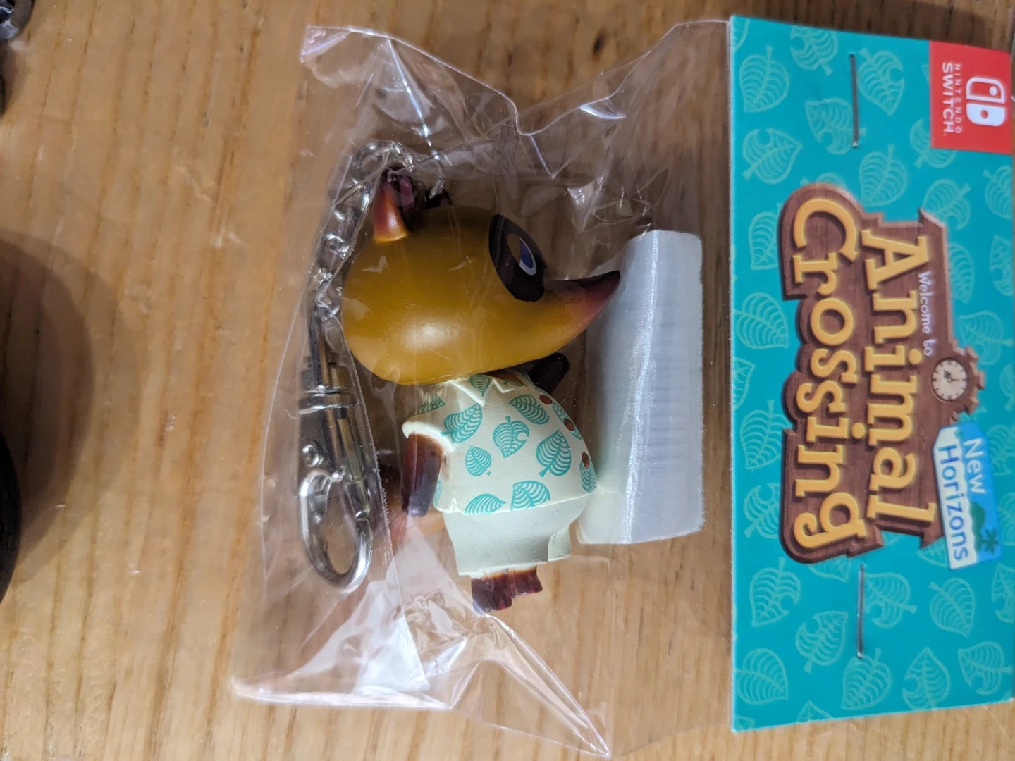 This is a keychain featuring Tom Nook from Animal Crossing: New Horizons. The item comes with its original packaging.