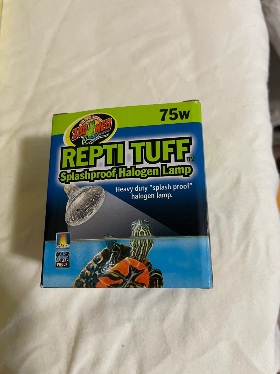 18Selling a Zoo Med Repti Tuff splashproof halogen lamp, 75w. It's designed to save your reptiles with a heavy-duty splash-proof design. Perfect for basking!