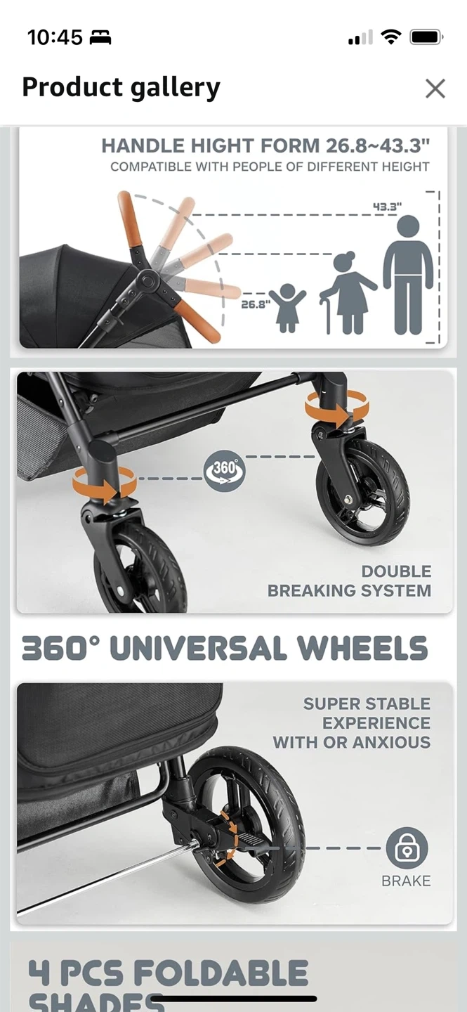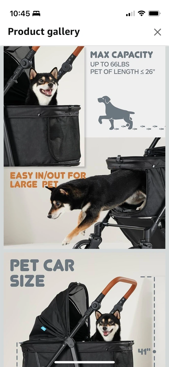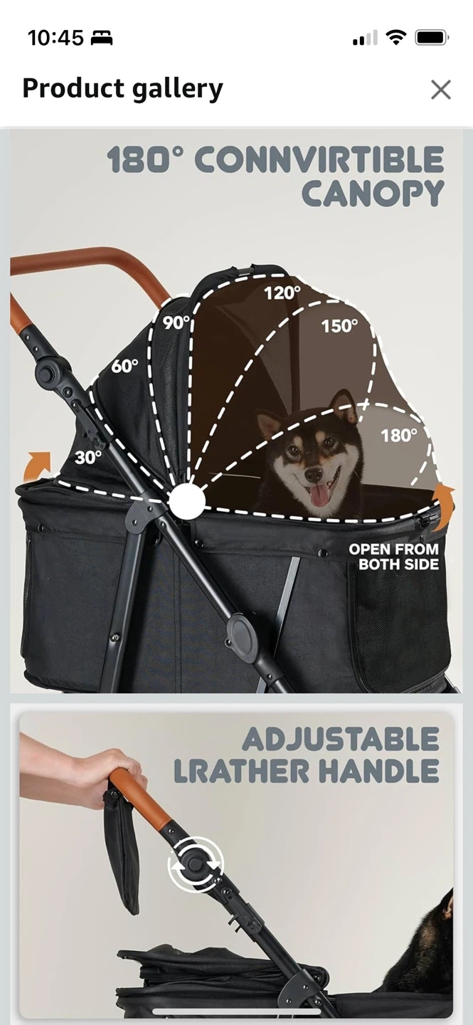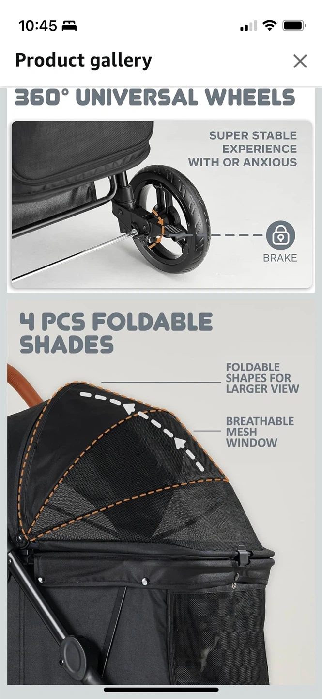 Selling a Zoosky large dog stroller! It's in great condition and can hold pets up to 66lbs. No longer avail on Amazon. Worked perfectly for my senior cocker spaniel, thick tires helped to keep a smooth ride even if slightly sandy/snow/light gravel. Some features include: - Handle height adjusts from 26.8" to 43.3" - 360° universal wheels - Double breaking system - 4 pcs foldable shades - 180° convertible canopy - Adjustable leather handle