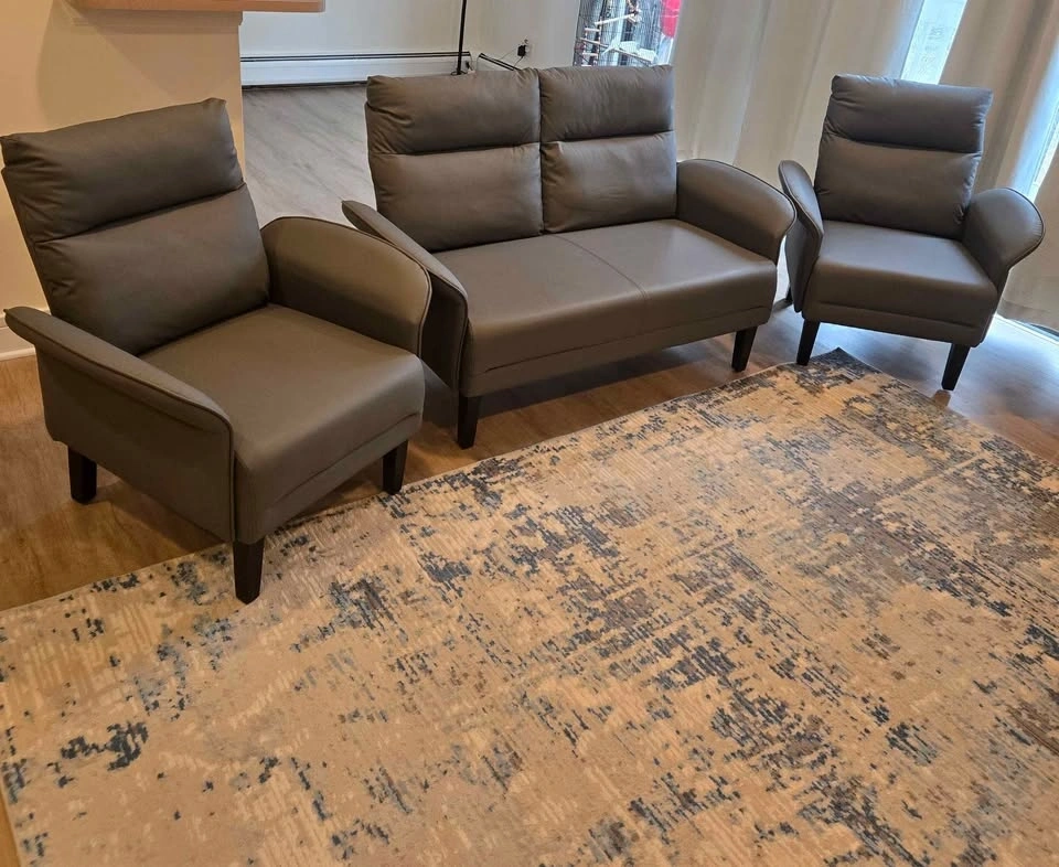 Perfect for offices, dorms, and apartments. Stylish, comfortable, and easy to move. Very easy to maintain – just wipe away spills! Barely used sofa set, super lightweight and easily transportable. An SUV can fit it all. Originally bought for $600 three months ago. Selling because I have to unexpectedly move again. Dimensions images are attached.