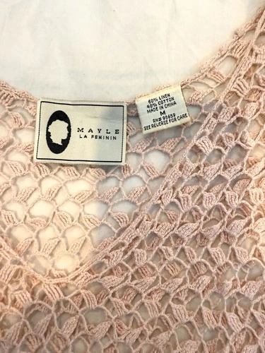 Mayle Cropped Sleeveless Crochet Mauve Linen/Cotton Top Sz M