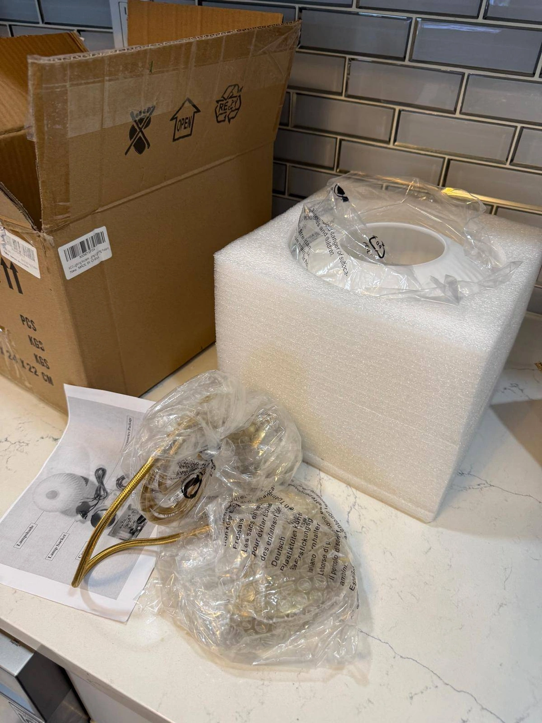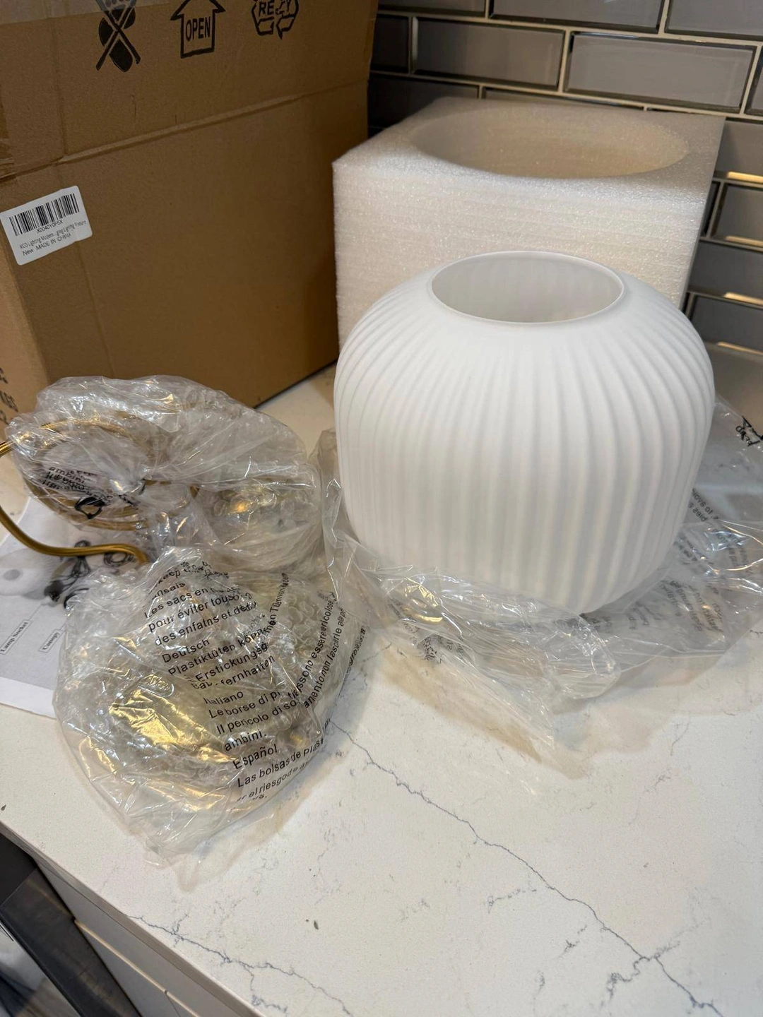 New product ,KCO Lighting Modern Gold White Glass Pendant Light Contemporary Brass Metal Kitchen Island Dining Pendant Light Industrial Large Globe Pendant Lamp 1-Light Round Ball Hanging Lighting Fixture