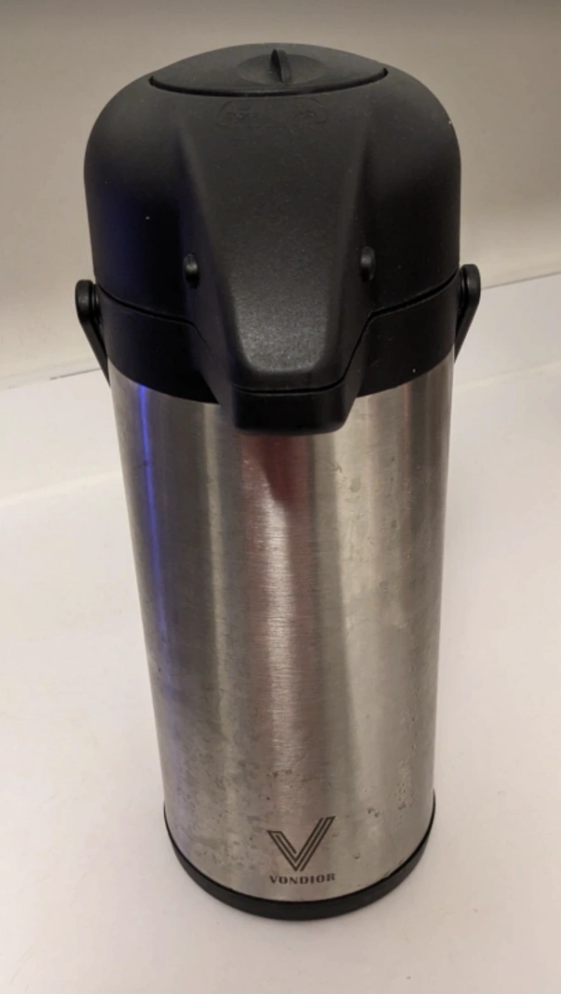 Keeps drinks at the right temperature. Stainless steel construction. Includes carrying handles. Great for coffee, tea, or other beverages. 20 hours hot, 36 hours cold. Includes original packaging.