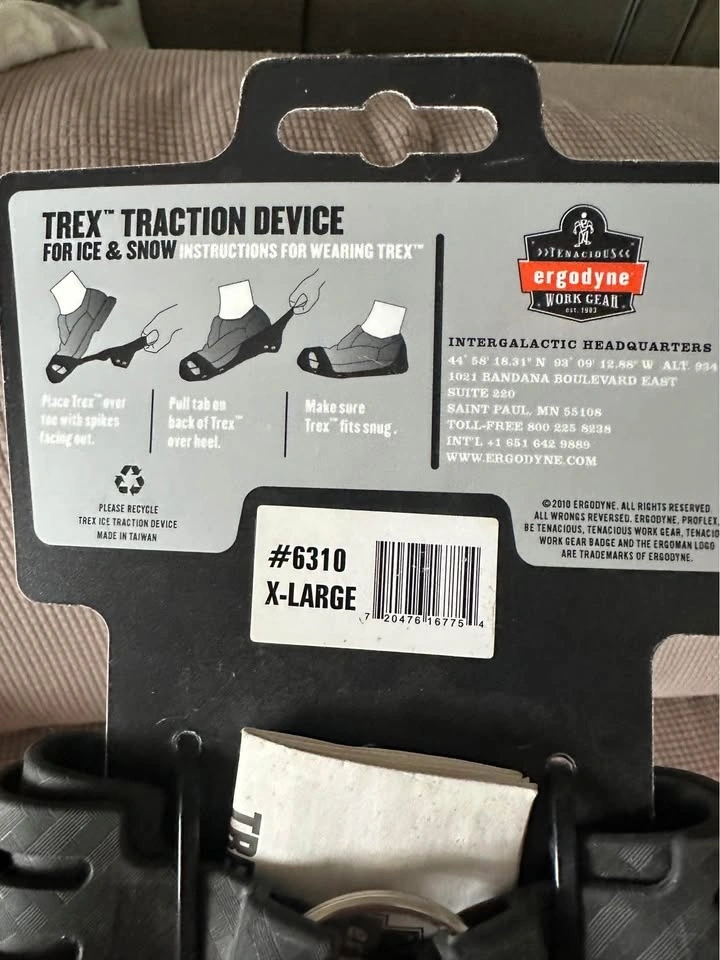 NIB Ergodyne TREX 6310 Adjustable Ice Traction Devices in size XL (fits men’s shoe sizes 11-13.5).