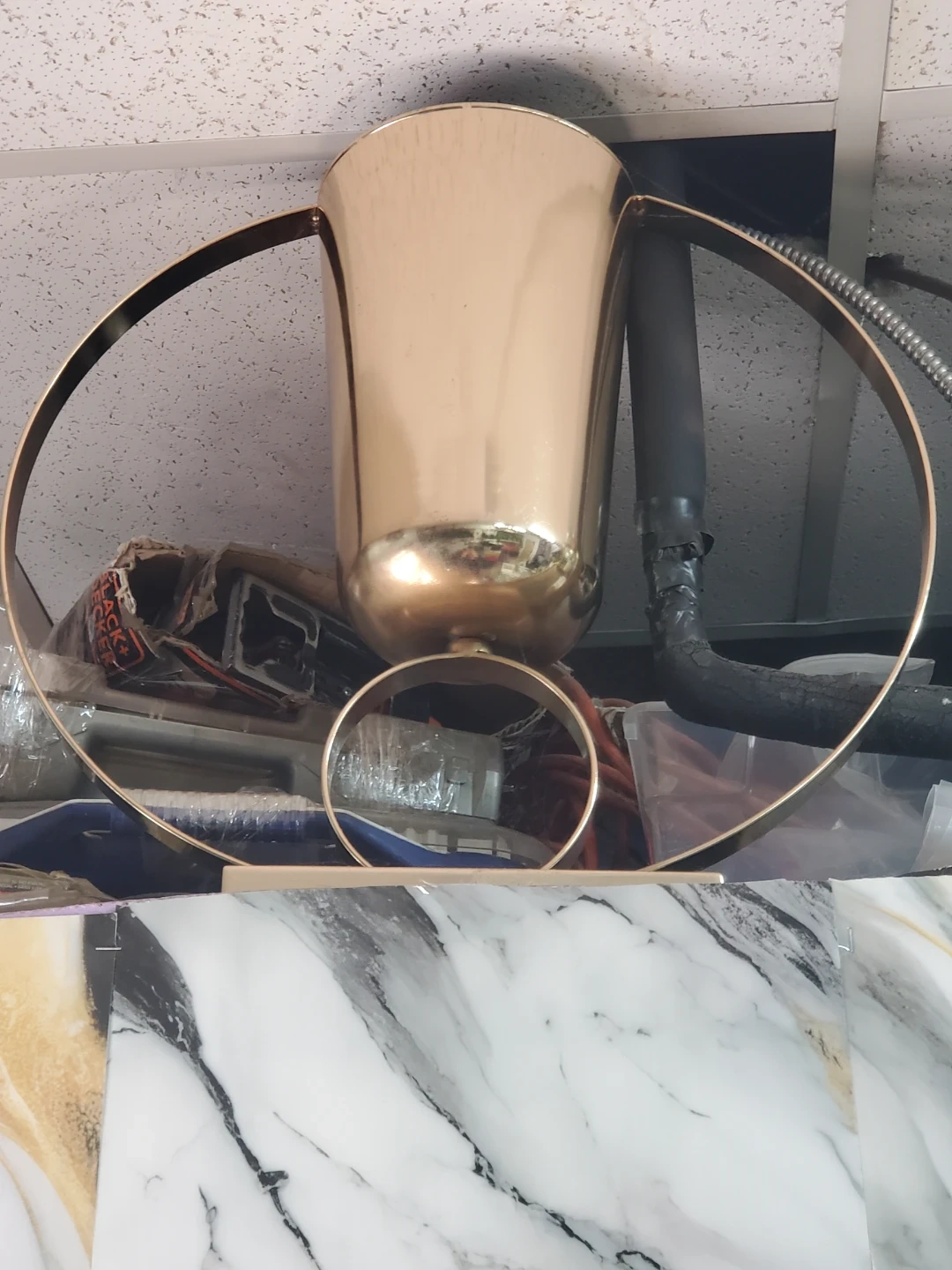 Gold Metal Vase with Hoop Handles